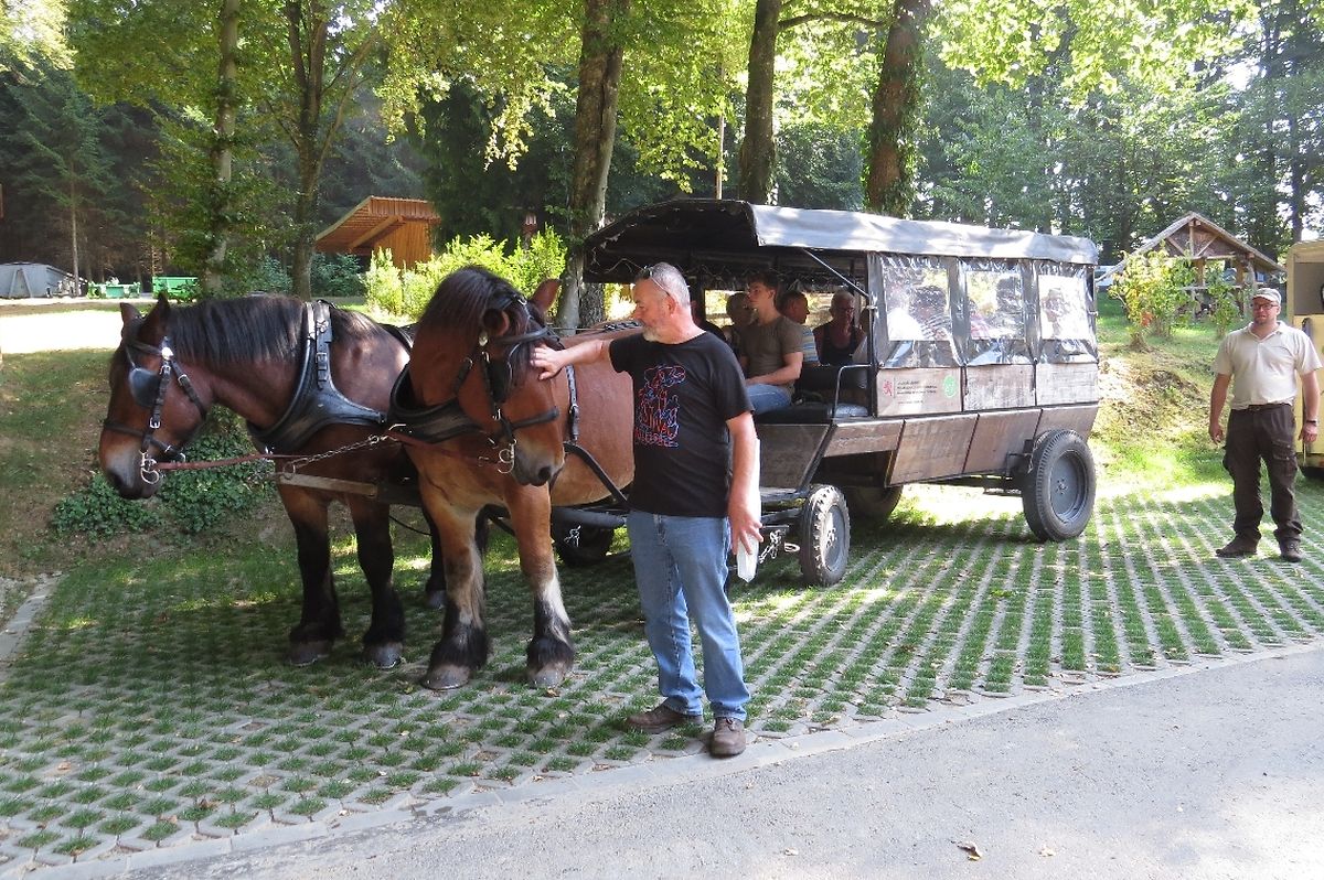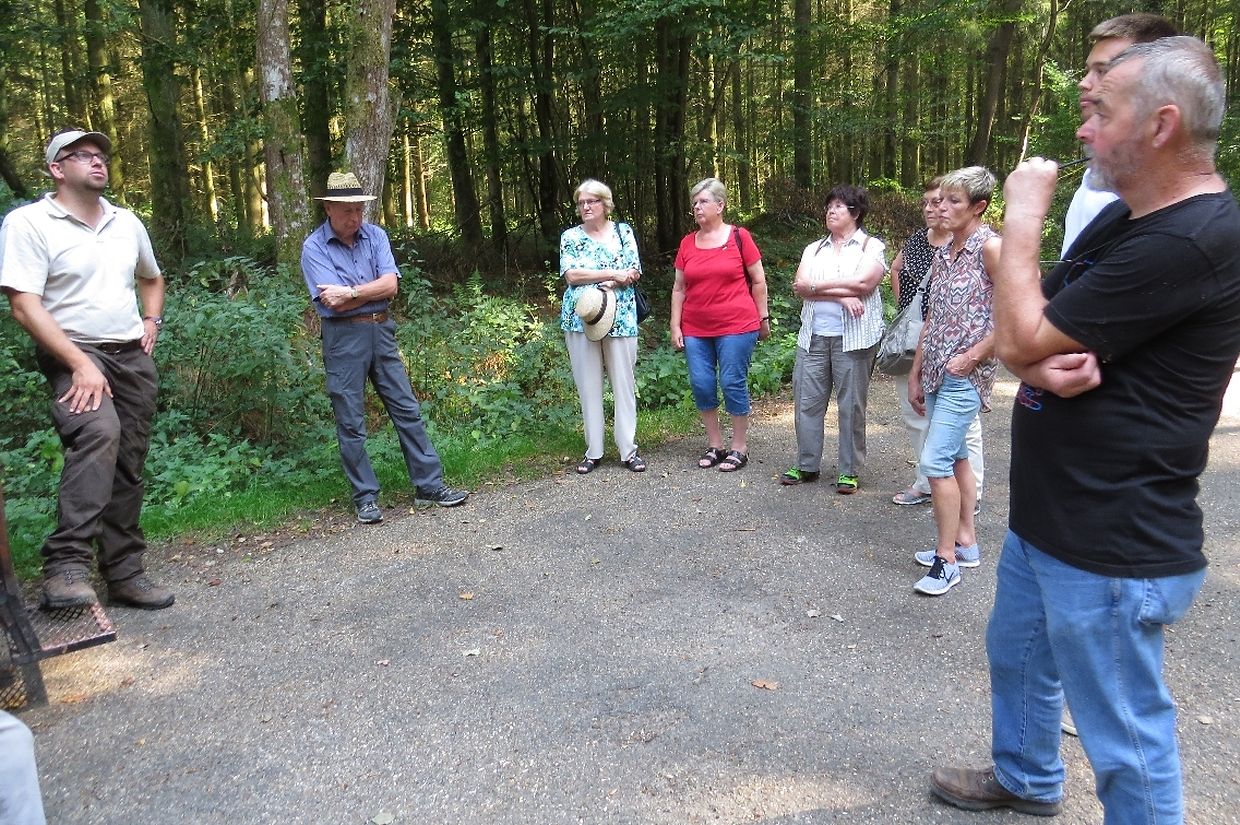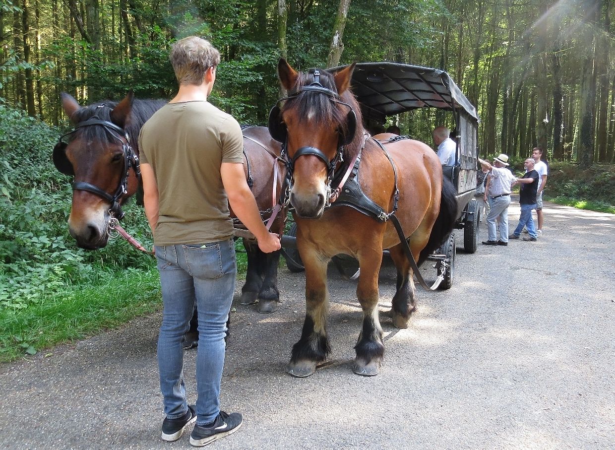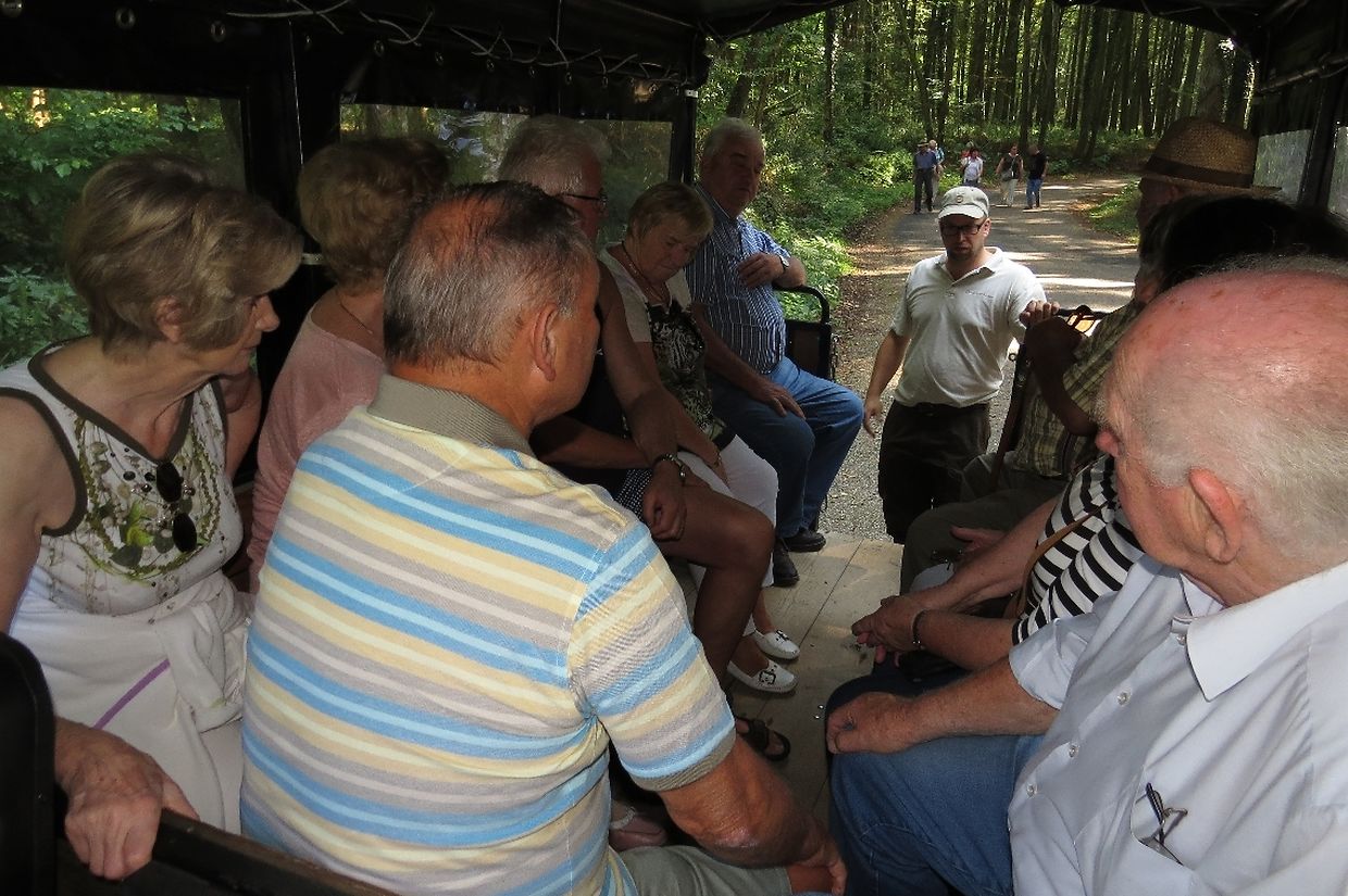 Der ihnen bekannte, sympathische und freundliche Gemeindeförster, welcher hier seine Arbeitsstelle bezogen hat, erklärte sich spontan bereit die angereisten, rüstigen Einwohner durch sein Waldgebiet zu führen. Nach dem Besuch des Forsthauses, in welchem die Forststelle eingerichtet ist, bestieg die lebensfrohe Gruppe einen, von Pferden gezogenen Leiterwagen; die Rundfahrt durch die Forsten konnte beginnen. Interessiert verfolgten sie die fachmännischen Erklärungen des Gemeindeförsters David FARINON, sie zeigten sich erstaunt, was sie alles hier erfuhren und erklärt bekamen.