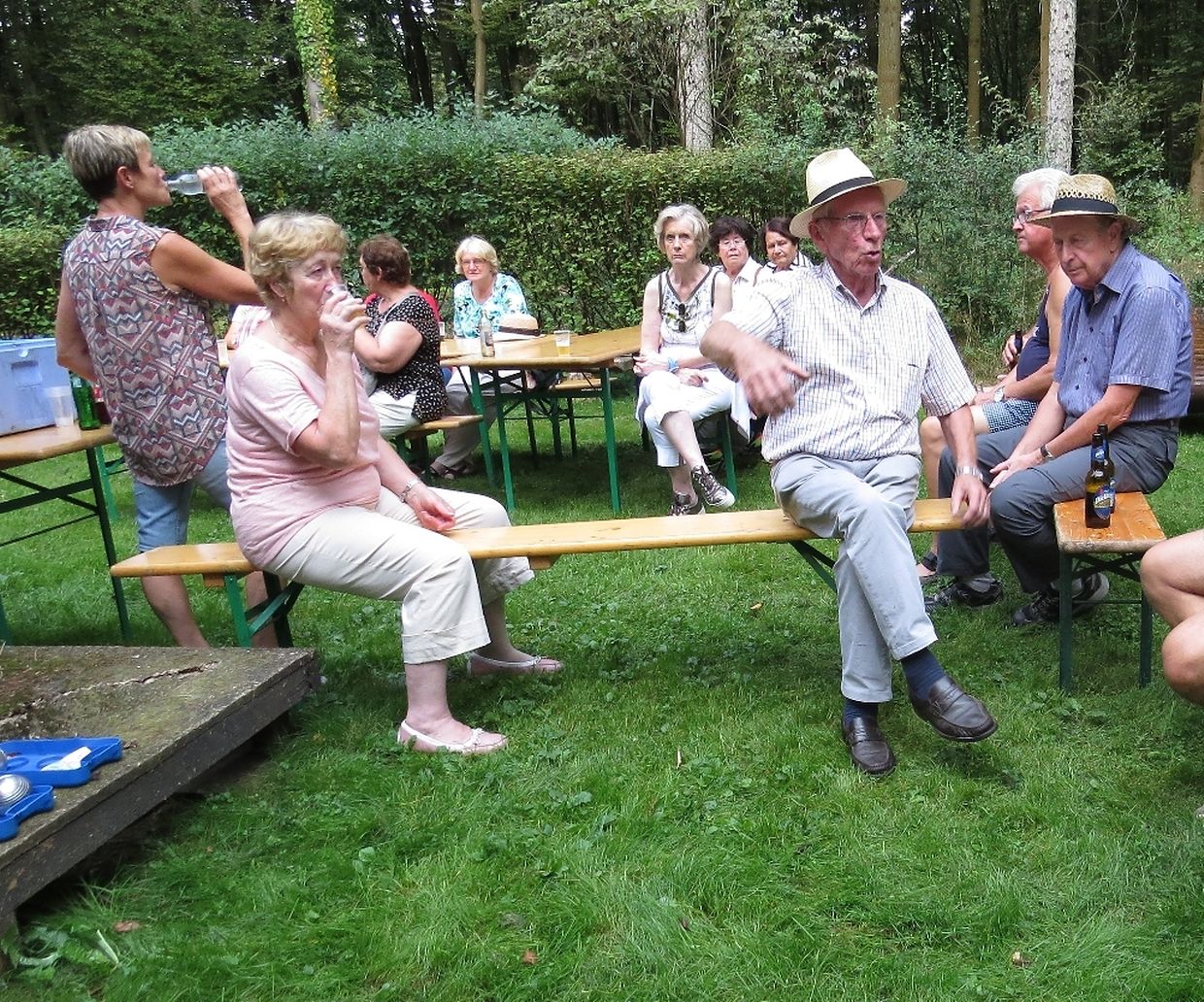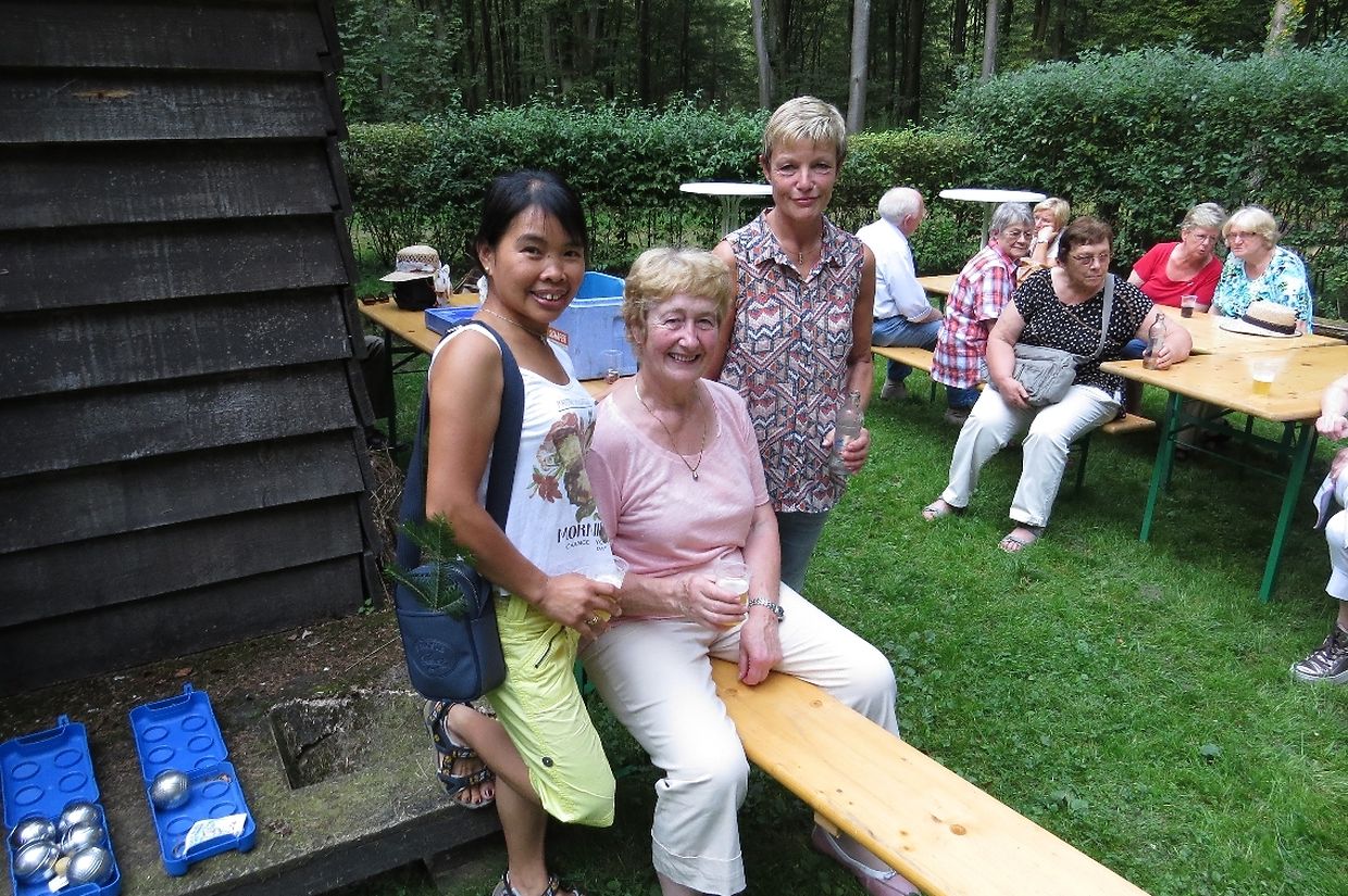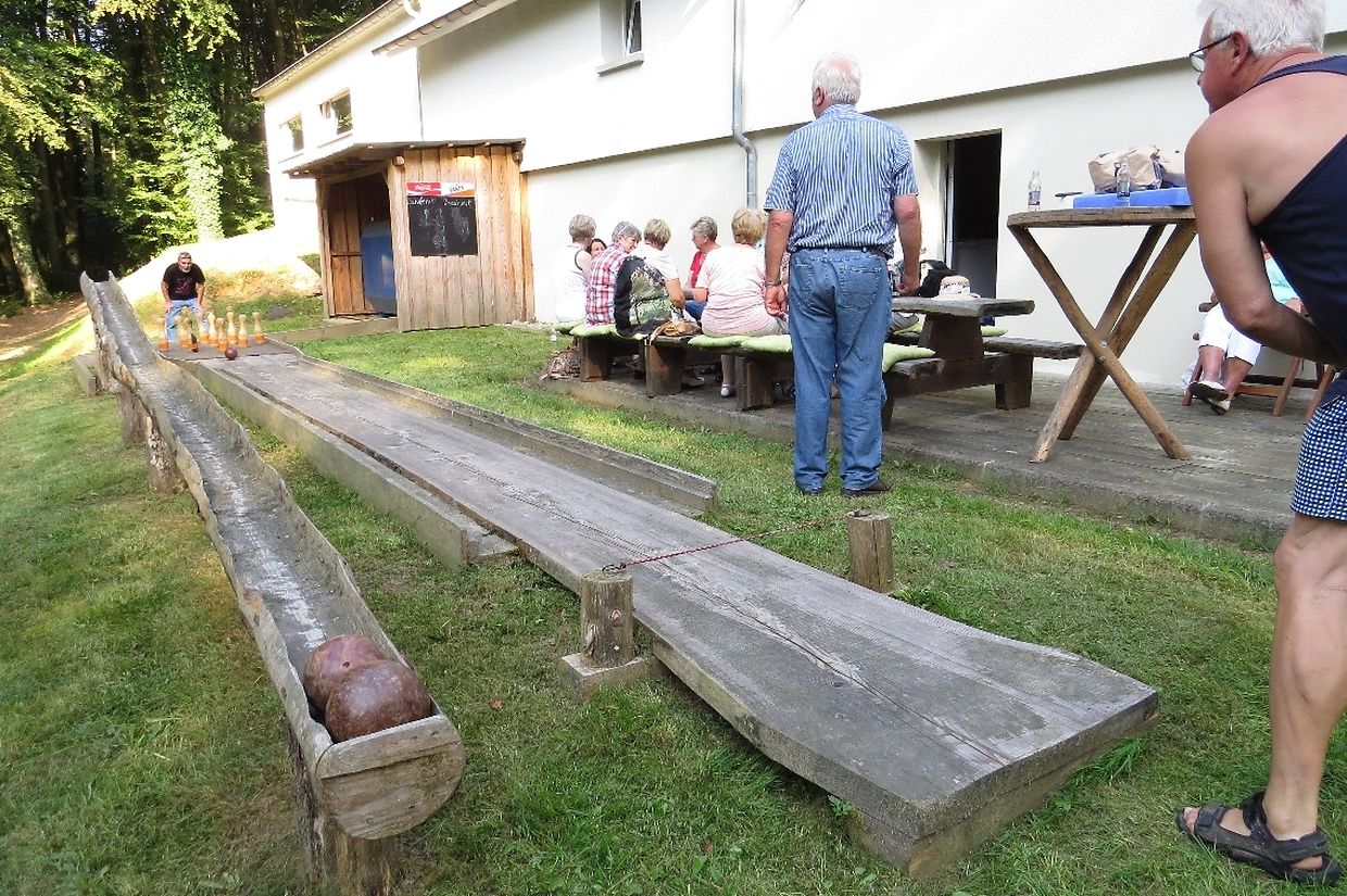Nach der Rundfahrt durch die Stille und Abgeschiedenheit der Marscherwaldes, folgte alsdann der gesellige Teil dieses Ausfluges. Beim sonnigen, warmen Sommerwetter suchte man Platz im Schatten, im Umfeld des Forsthauses. Das Kegelspiel auf der Holzbahn und das Boulespiel durften dann auch nicht fehlen.