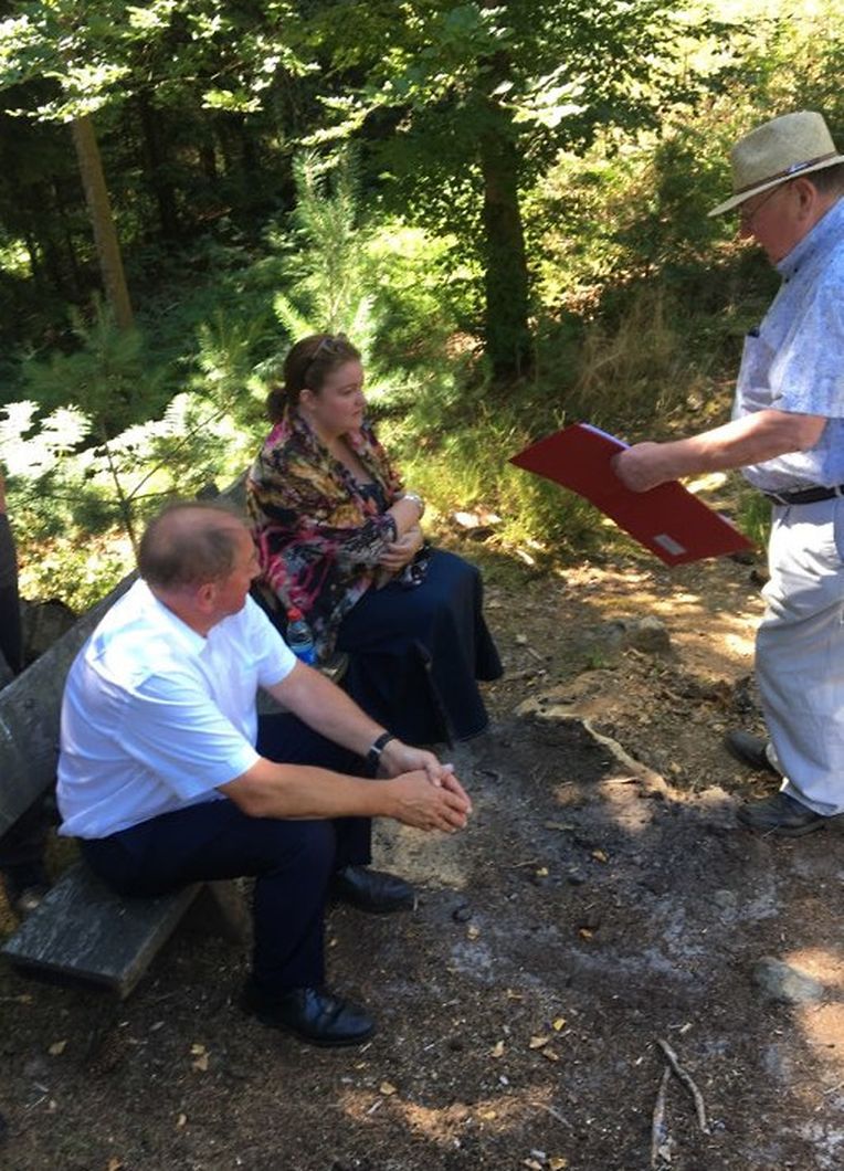 Et war mer dofir eng besonnesch Eeër, der neier britescher Ambassadrice Fleur Thomas an den Invitéen vun der Becher Gemeng, d´ Oflaf Etappen vum Entstoen vun der vill besichter Halifax Gedenkplaz, hei am Marscherwald, an der schéiner Natur, ze erklären. Ech war frou dat hunn dierfen, am Optrag vun der Becher Gemeng ze maachen. E grousse Merci un Madamm Ambassadrice fir hire Besuch, et war ons eng grouss Eeër si hei dierfen ze empfänken.