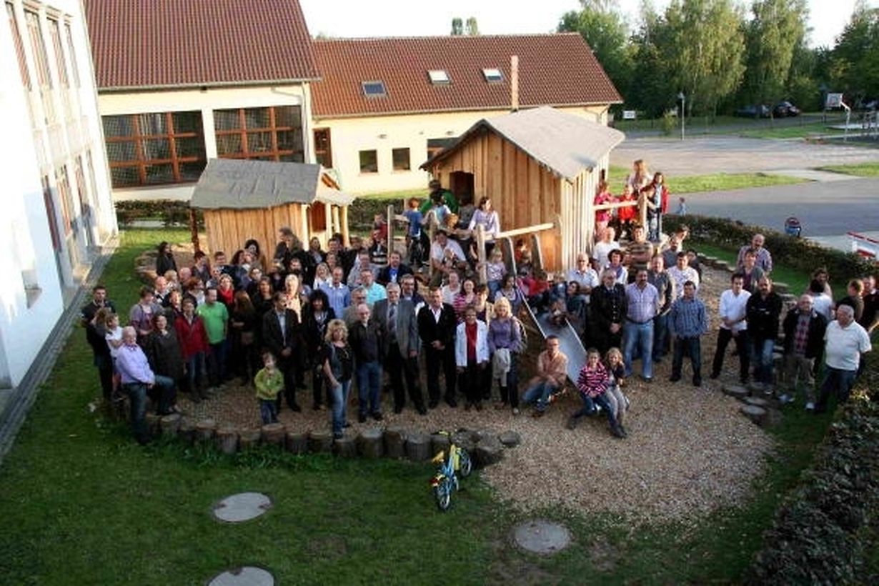 Am Freitag fand nun in Gegenwart vieler Gäste die offizielle Einweihung des neuen Schulhofes statt. Ricky Walisch bedankte sich bei allen Helfern und erinnerte daran, dass der Vorstand dem Vorhaben in der ersten Versammlung noch vor einem Jahr skeptisch gegenüber stand. In der zweiten Versammlung seien jedoch die Pläne ausgearbeitet und Gruppen für die Aktionstage im Mai gebildet worden. Dabei beteiligten sich die Elternvereinigung, das Lehrpersonal und die Gemeinde finanziell an der Verwirklichung des Holunderschulprojektes, das in einen kreativen und einen aktiven Bereich eingeteilt wurde.