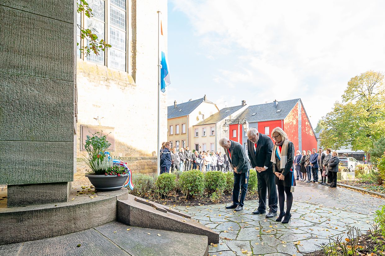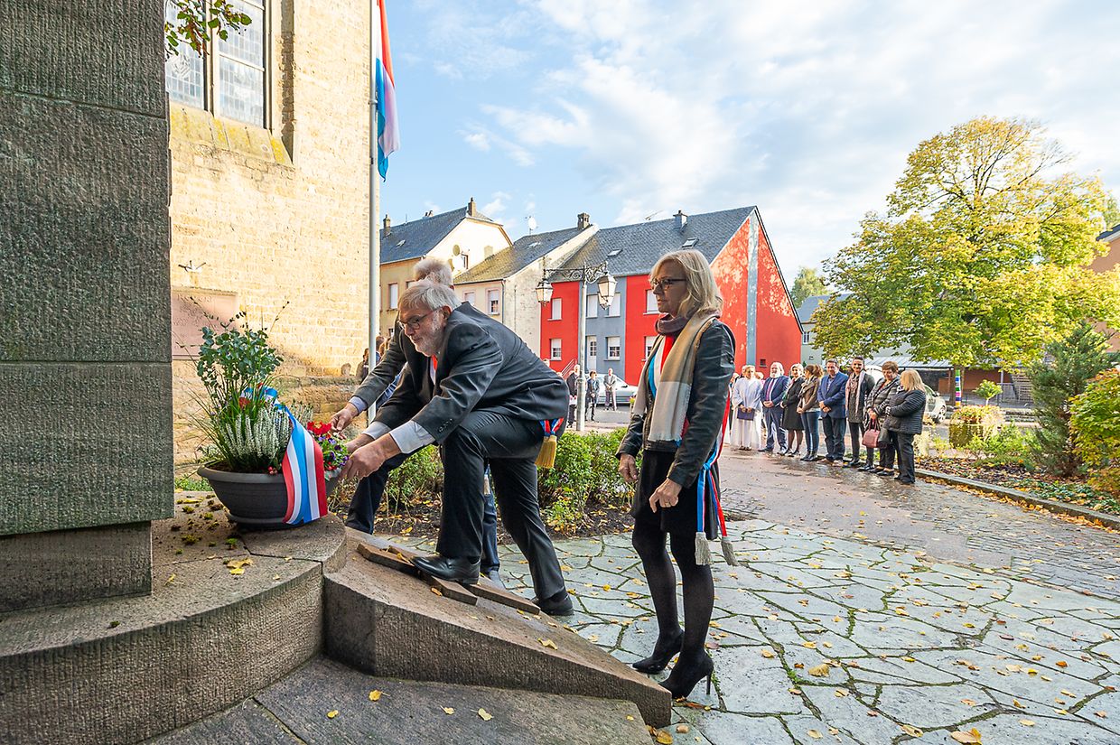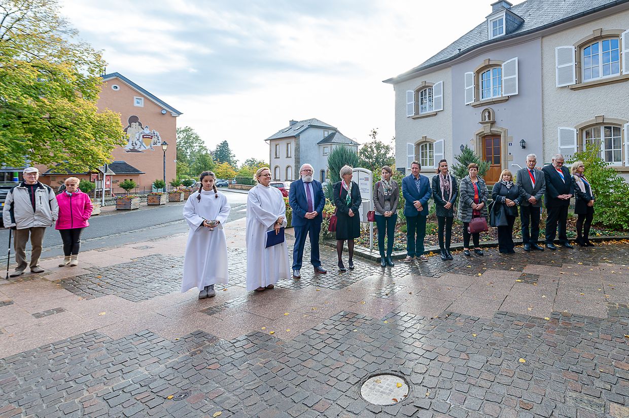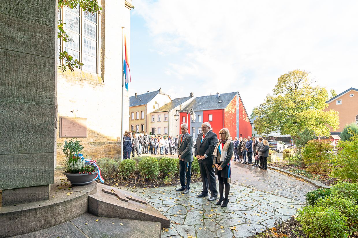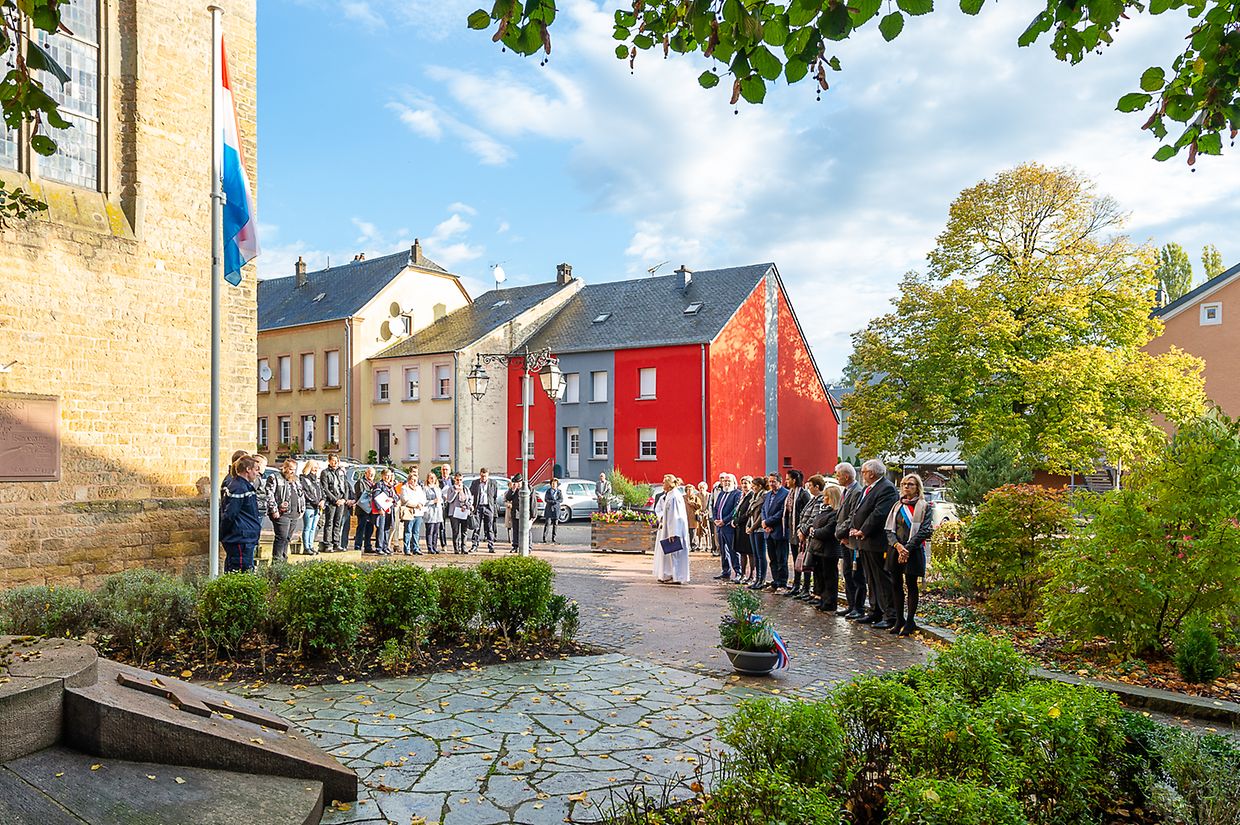 No der Mass huet de Schäfferot mam Camille Hoffmann, Lily Scholtes an Emile Wies Blumme beim Monument aux Morts néiergeluecht. Mam Sange vun der Heemecht gouf dës Gedenkfeier ofgeschloss. An der Kierch an och dobausse beim Monument hunn d’Chorale Ste Cécile vu Beefort a Chorale Sang mat Waldbëlleg-Haler d’Gedenkfeier musikalesch encadréiert.