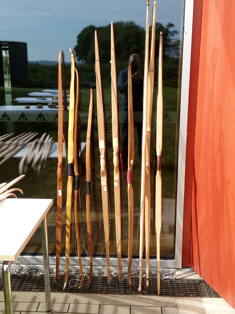Der Sonntag stand ganz im Zeichen von Sehnen und Pfeilen. Die Teilnehmerbögen hatten unterschiedliche Längen und noch keine Sehne um die Pfeile zu verschießen.