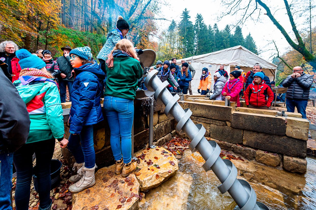 Eng archimedesch Schrauf, eng Waasserblumm, eng Waasserkaskade an ee Millerad sinn ënner anerem de Bestanddeel vun engem erliefnespädagogesche Waasserspill, dat op dëser Plaz opgeriicht gouf. Dëse Projet am Optrag vun der Beeforter Gemeng gouf vu “Pact” vu Gréiwemaacher entwéckelt a soll d’Plaz net wäit ewech vum Schlass méi attraktiv gestalten an dat net nëmme fir Touristen mais och de ville Wanderer a hir Kanner, déi hei laanscht trëppelen a flott Stonnen zu Beefort verbréngen. Des Weideren erméiglechen nei Sëtzgeleeënheeten eng Paus matzen an der Natur anzeleeën.
