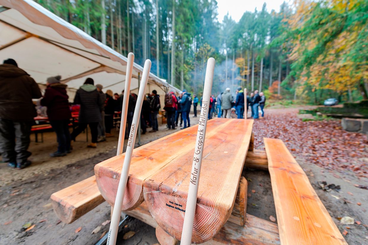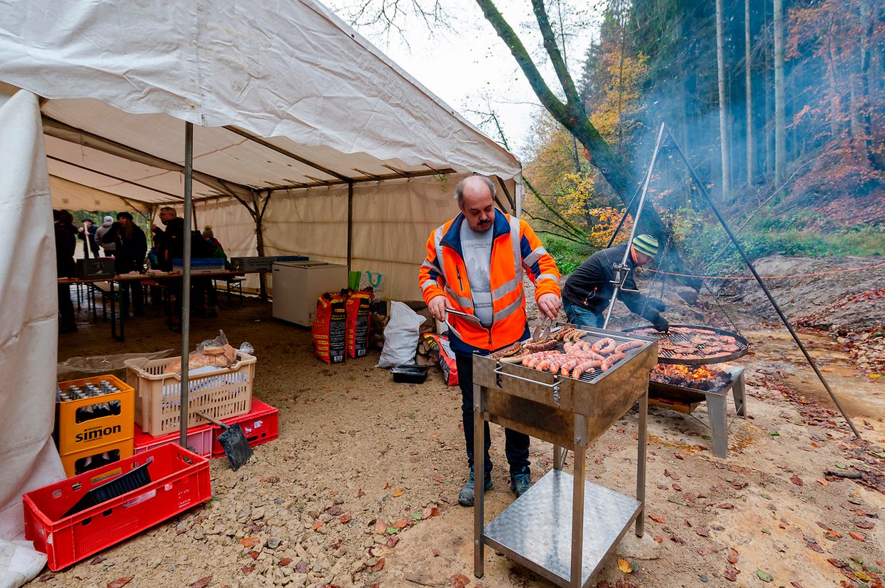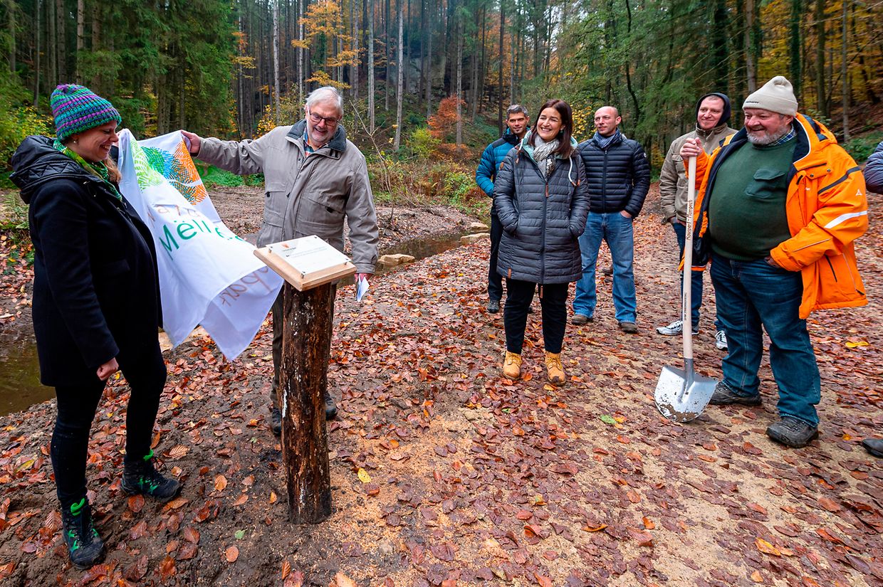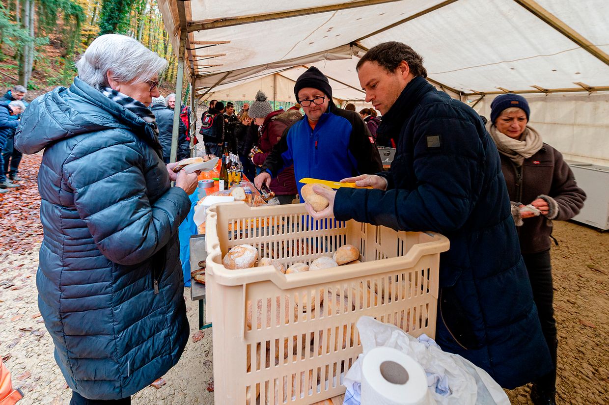 De Rendezvous war um Parking beim Schlass. Nodeems een e bëssche laanscht d’Schlass an duerch de Bësch getrëppelt ass huet de Buergermeeschter Camille Hoffmann zum Schluss vum virun zwee Joer ageweite Holzsteg d’Éieregäscht begréisst, dorënner och d’Ëmweltministesch Carole Dieschbourg. Um Wee bei de Klingelbuer konnt een am Dall d’Fiichtegkeet gutt spieren a genau dës Fiichtegkeet bitt dem Bam vum Joer 2019, der Flatterulm, ideal Bedingungen un. Hei am Dall leeft och d’Haupeschbaach an dréit soumat ee groussen Deel zu der Fiichtegkeet op dëser Plaz bäi.