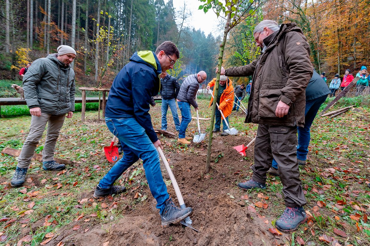 No enger kuerzer Aféierung an d’Thema an e puer Erklärungen zum Site an dem Bam vum Joer gouf geschafft. Déi eenzel Gemengevertrieder kruten eng Schëpp mam Numm vun hirer Gemeng iwwerreecht a si hunn zesumme mat der Ekipp vum Natur- & Geopark déi dräi lescht Beem geplanzt. Ënnerstëtzung krute se dobäi vum Fierschter Marc Hoffmann a seng Ekipp, grad esou vum Service technique vun der Beeforter Gemeng. Déi aner Beem goufe schonns am Laf vun der Woch vun de Beeforter Schoulkanner geplanzt. Ofschléissend hunn déi jeeweileg Vertrieder eng Plaquette un hire Bam dru gemeet.