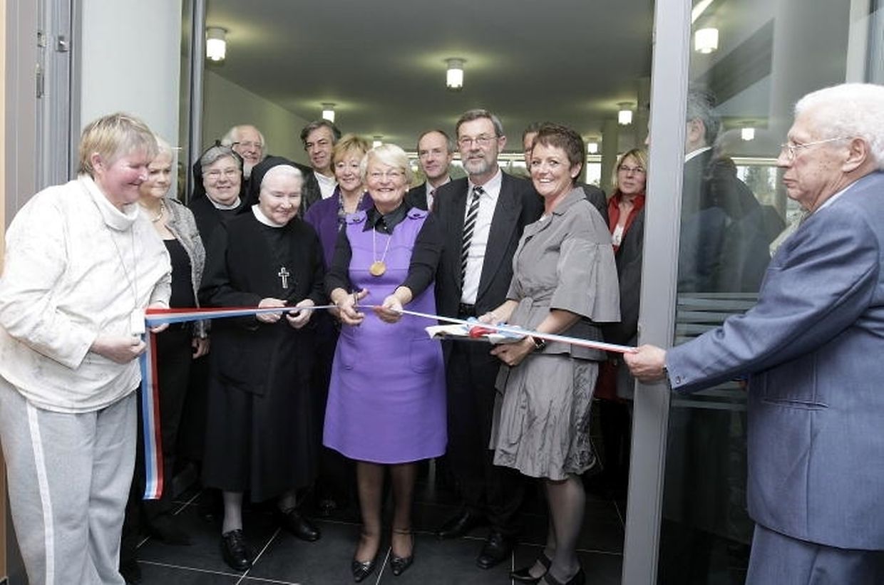 Das „Haaptmann's Schlass“ in Berburg, das sich vom Blindenheim zu einem Alten- und Pflegeheim entwickelt hat, wurde in den vergangenen zwei Jahren vergrößert. Die ersten Senioren sind bereits am 1. Juni in ihr neues Zuhause gezogen, gestern Nachmittag wurde der Neubau mit 72 Betten offiziell eingeweiht. Schwester Marie-Eugenie Knepper, Präsidentin des Verwaltungsrats der Claire Asbl, begrüßte die zahlreichen Ehrengäste aus Politik und Gesellschaft mit einem Rückblick auf die Geschichte des „Haaptmann's Schlass“. Vieles habe sich seit der Zeit geändert, als dort noch den blinden Mitbürgern eine wohlbehütete zweite Heimat geboten wurde. Doch sei in diesen Mauern immer noch der gleiche Geist zu finden: „Ein Geist von Hilfs- bereitschaft, Barmherzigkeit und Nächstenliebe, mit dem die Schwestern der Heiligen Elisabeth sich um die Bewohner des Heimes gekümmert haben.“