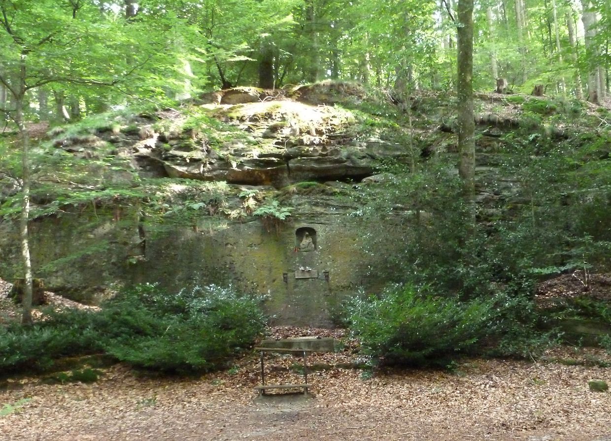 · D´ Lourdes Grotte vun den Bäertreffer Zwangsrekrutéierten bei der Huel Lee (Hohllay)