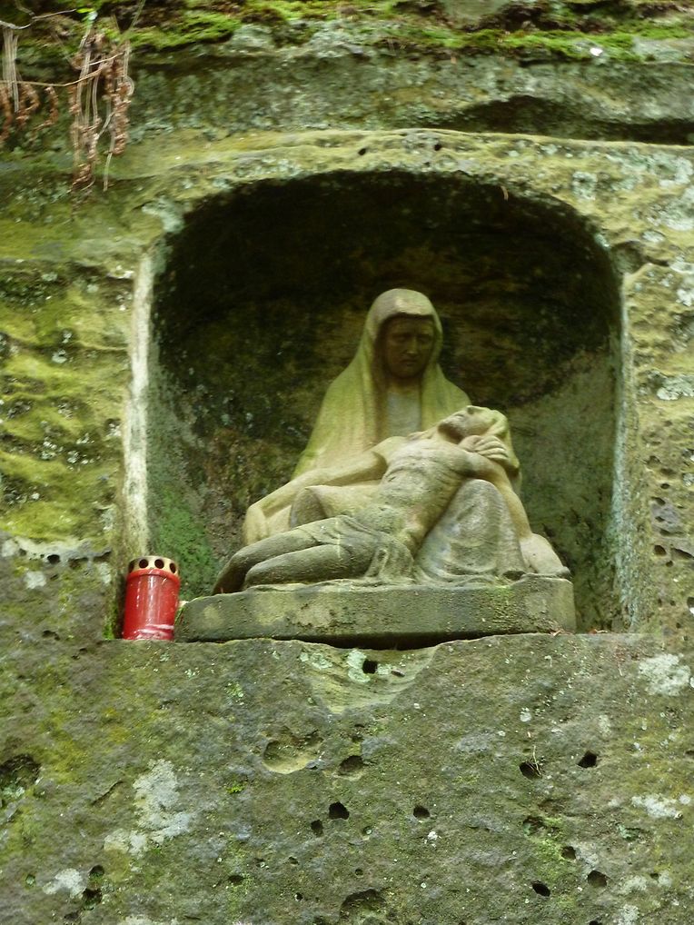 Bildchen war eine Initiative vom Pfarrer Jos Keup: 1939/40 entstand auf seine Initiative hin im Waldhang unterhalb des „Hënnerzoll“ («Bënzelt») das sogenannte „Bildchen“. Bis vor etwa zweiunddreizig Jahren ging noch am Rosenkranzsonntag oder an Marie Himmelfahrt die Prozession dorthin. Damals ging Pfarrer Keup höchstpersönlich zum „Zäärde Pitter“ und zum „Huemenspätter“ mit dem Wunsch, diese beiden sollten ihm einen Platz im Wald angeben, wo er eine „Mater Dolorosa“ aufstellen könnte. Man entschied sich für einen Platz nahe der alten „Bildcheslay“, was den Namen „bäim Bildchen“ erklärt. Daraufhin schlugen Konsbrück Jeng und sein Bruder Albert in mühevoller Arbeit die Nische in den Felsen, in der heute die Mater Dolorosa steht. Während der Kriegsjahre suchten viele Berdorfer diesen Platz auf, um hier Trost und Stärkung zu finden.