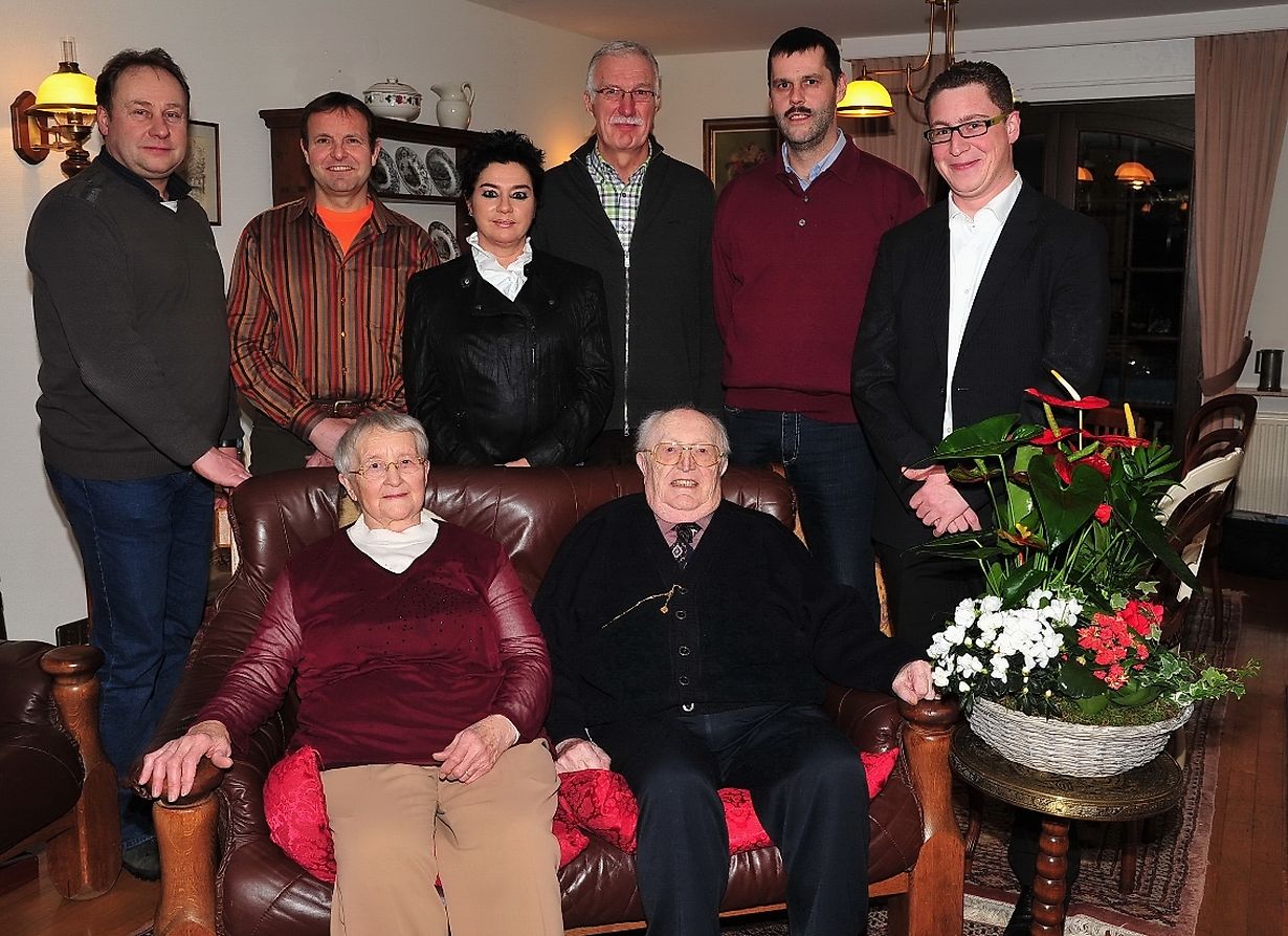 Arthur Conrad wurde am 7. Februar 1929 in Böwingen/ Attert geboren und konnte dieser Tage auf stolze 85 Jahre zurückblicken. Er erblickte das Licht der Welt als jüngster Sohn von zwei Kindern des Ehepaares Victor Conrad aus Mertzig und Anne Huberty aus Eschweiler/ Wiltz. Am 10. August 1953 wurde Hochzeit mit Marie Hilbert aus Niederkolpach in der Herz- Jesu Kirche in Luxemburg gefeiert. Ein Sohn und eine Tochter entsprossen aus ihrer harmonischen Ehe. Heute zählen drei Enkelkinder zur Familie Conrad. In seinem aktiven Leben führte Arthur Conrad zusammen mit seiner Gattin die elterliche Gaststube bis zum 31. Dezember 1990 in Böwingen/ Attert. Auch den Beruf des Viehhändlers hatte Arthur Conrad von seinem Vater übernommen und führte denselben während über 50 Jahre aus. Beide zogen sich dann zum gemeinsamen Lebensabend im Jahre 1991 in ihr neuerbautes Haus in Böwingen/ Attert zurück. Seit 1946 gehört der Jubilar der Feuerwehr an und ist seit 1960 aktiver Sänger im Böwinger Männerchor. Bürgermeister Paul Mangen in Begleitung seiner beiden Schöffen Félicie Streicher- Schintgen und Henri Noesen mit den Räten Claude Mathekowitsch, Frank Conrad und Romain Mersch gratulierten dem rüstigen Geburtstagskind Arthur Conrad zum 85. Geburtstag mit schönen Blumen und wünschten ihm noch weitere zufriedene und gesunde Jahre in Böwingen- Attert dazu. ( FOTO: CHARLES REISER)