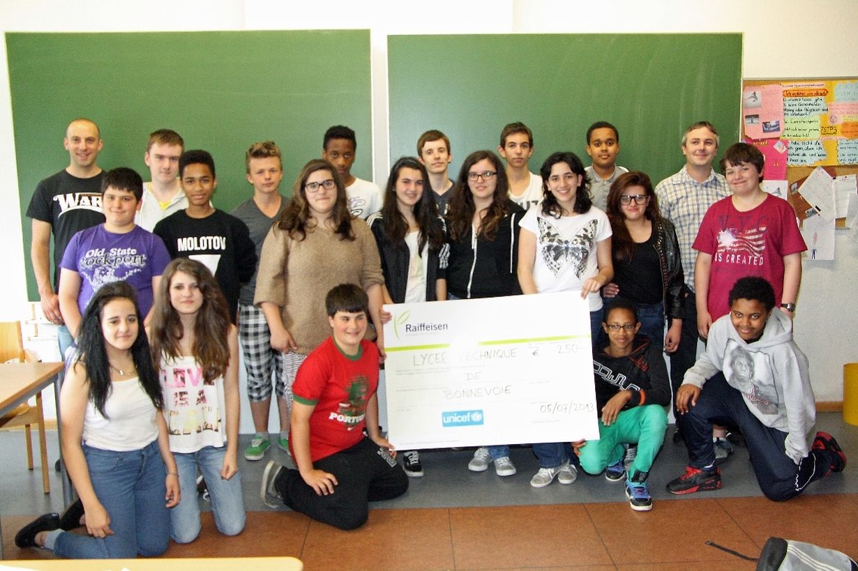 Die Schüler und Schülerinnen der 7STP3 des „Lycée Technique de Bonnevoie“ (LTB) hatten am 14. März im Zusammenhang mit dem „TIM-Projekt“ (Tutorat und integriertes Methodenlernen) einen literarischen Abend im Festsaal des Lyzeums organisiert. Eingeladen waren die Eltern sowie alle Lehrer. Ziel des Projektes war es, erstens die Schüler autonom, einzeln, zu zweit oder in kleinen Gruppen dazu anzuregen Texte für den Literaturabend zu schreiben und gleichzeitig den Ablauf der Aufführung eigenständig zu planen. Zweitens sollte die Klasse als Gruppe gestärkt werden, um zu zeigen, dass die Schüler gemeinsam mehr erreichen können. Die Lehrerinnen Anna Rizzi, Rachel Bindels und Tessy Petro begleiteten das Projekt und haben die engagierten Schüler bei der Umsetzung ihrer Ideen unterstützt. Zum Schluss der Vorstellung haben sie Spenden in Höhe von 250 Euro gesammelt, die sie vor einigen Tagen an Patrick Hynnen und Spencer Kirpach von Unicef überreichten. „In acht Länder der Sahel-Zone d.h. im Burkina Faso, Mali, Mauretanien, Niger und im Tchad sowie in den Nordregionen des Kameruns, von Nigeria und des Senegal hat sich die Hungersnot arg verschlimmert“ so die Unicef-Vertreter vor der Klasse und sie bedankten sich für die Spende. 15 Millionen Leute sind von dieser Not betroffen und ungefähr eine Million Kinder unter fünf Jahren werden in den sechs Monaten sterben, wenn nicht sogleich geholfen wird. (G.L.)