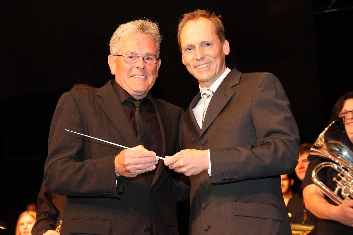 Claude Weber eröffnete das Konzert mit „Jubilance“ (Benjamin Yeo) und überreichte anschliessend den Taktstock nach 17 Jahren weiter an den neuen Dirigenten Romain Kerschen. Unter der neuen Direktion folgten anspruchsvolle Musikstücke wie „Light Cavalry“ (F.von Suppé), „Adagio for Strings“ (Samuel Barber) aus dem Kinofilm Platoon und „The Essence of Youth“ (Stijn Roels).