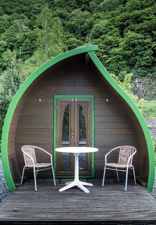 Die Leaf`s haben vier Betten mit eigenem WC, eine Küchenzeile mit Kühlschrank und warmen Wasser. Das Design und natürliche Aussehen passt schön in die Umgebung des Campings und spricht die Gäste an.