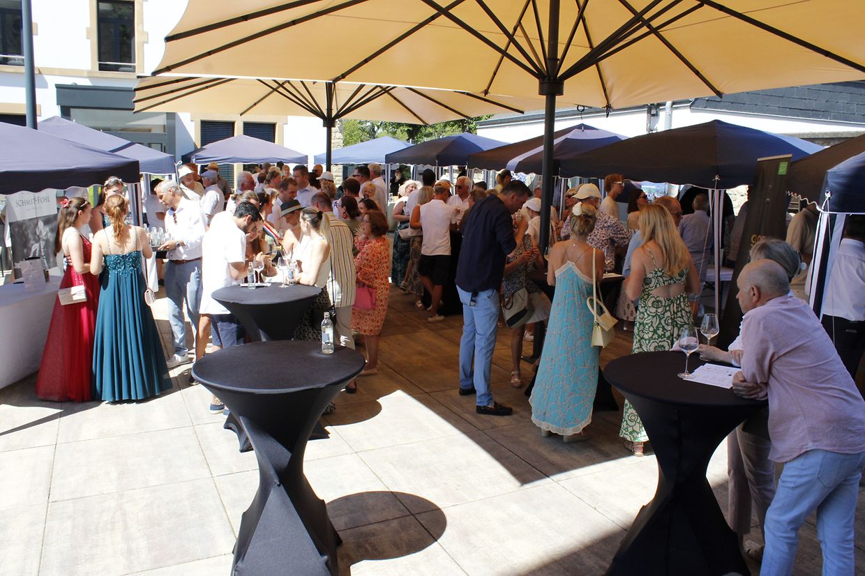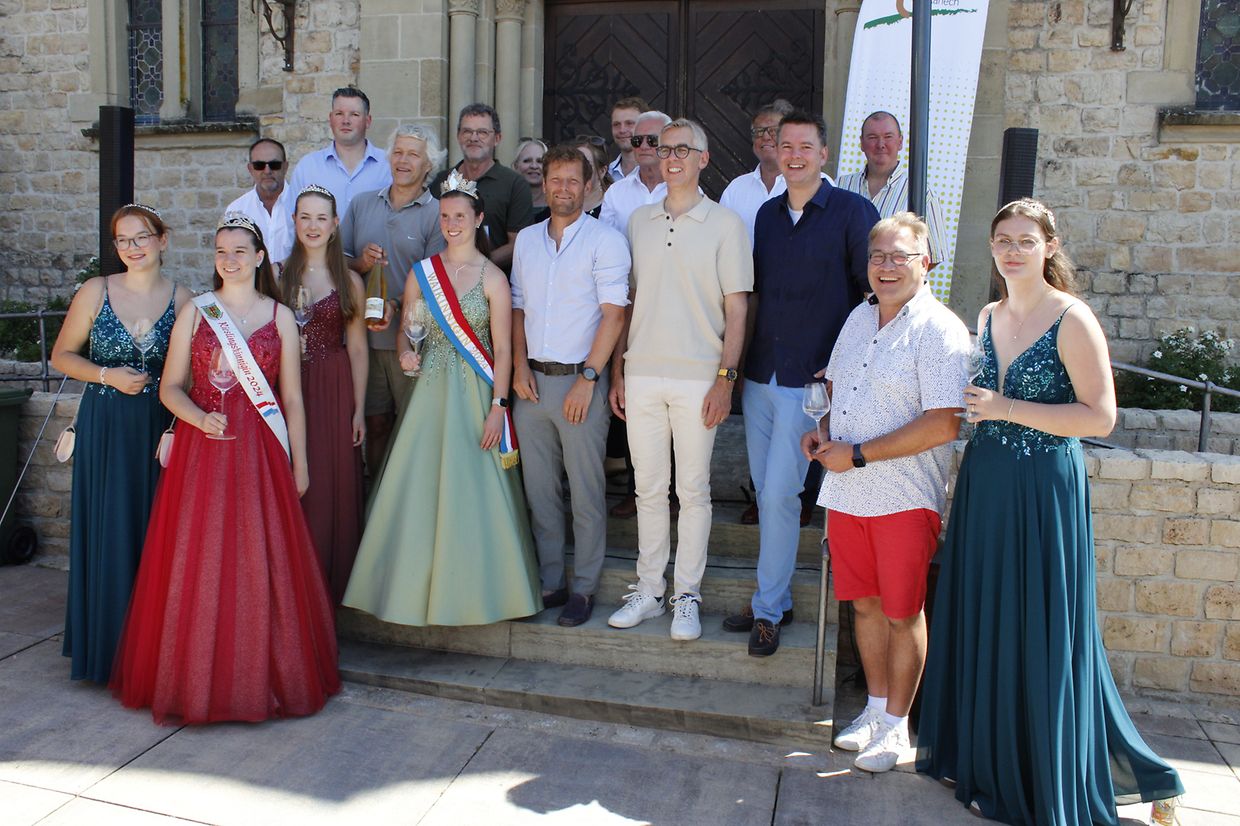 Canach. Bei strahlendem Sommerwetter feierte das Canacher Bioweinfest seine gelungene Premiere auf dem überdachten Vorplatz der Gemeinde. Die Veranstaltung war eine gemeinsame Initiative von Guide Vinlux, Natur & Ëmwelt sowie der Gemeinde Lenningen und hatte das Ziel, einem breiten Publikum die Qualität und Vielfalt des biologischen Weinbaus näherzubringen. Zur feierlichen Eröffnung begrüßte Bürgermeister Tim Karius im Beisein der Schöffen Jean-Marie Hermann und Philippe Gengler sowie mehrerer Gemeinderäte eine Reihe hochkarätiger Gäste mit folgenden Worten: „Häerzlech wëllkomm an eiser schéiner Gemeng Lenneng, der Dier zu der Musel, wou d’Landschaft sech lues awer sécher mat Wéngerte rëscht an den Himmel sech iwwer Muselriewer spannt, déi eis Wäin, Kultur a Genoss bréngen“. Unter ihnen befanden sich Innenminister Léon Gloden, Mittelstands- und Tourismusminister Lex Delles, mehrere Abgeordnete – sowie der Präsident der Privatwinzer, Guy Krier. Ebenfalls anwesend waren die Vertreter der Schöffenräte der Ostgemeinden, die luxemburgischen Biowein-Pioniere Raymond Aendekerk und Carlo Entringer von der Sektion „Natur & Ëmwelt“ Lenningen/Canach, die Weinhoheiten mitsamt Luxemburger Weinkönigin Anne-Catherine und Rieslingskönigin Anne mit ihren Prinzessinnen sowie zahlreiche Wein- und Crémantliebhaber.