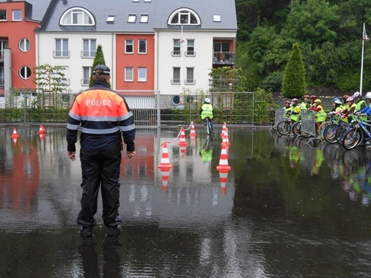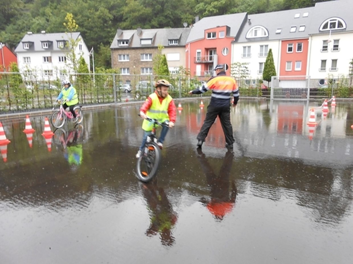 Après une vérification de chaque vélo exécutée par un agent de police, l'élève doit absorber un parcourt de dextérité. Celui-ci réussi, l'élève se dirigue sur la voie publique.Un parcout traversant le tout Clervaux s'ouvre à lui.Tout au long du parcourt il y a des postes de surveillance qui observent et évaluent nos jeunes cyclistes.