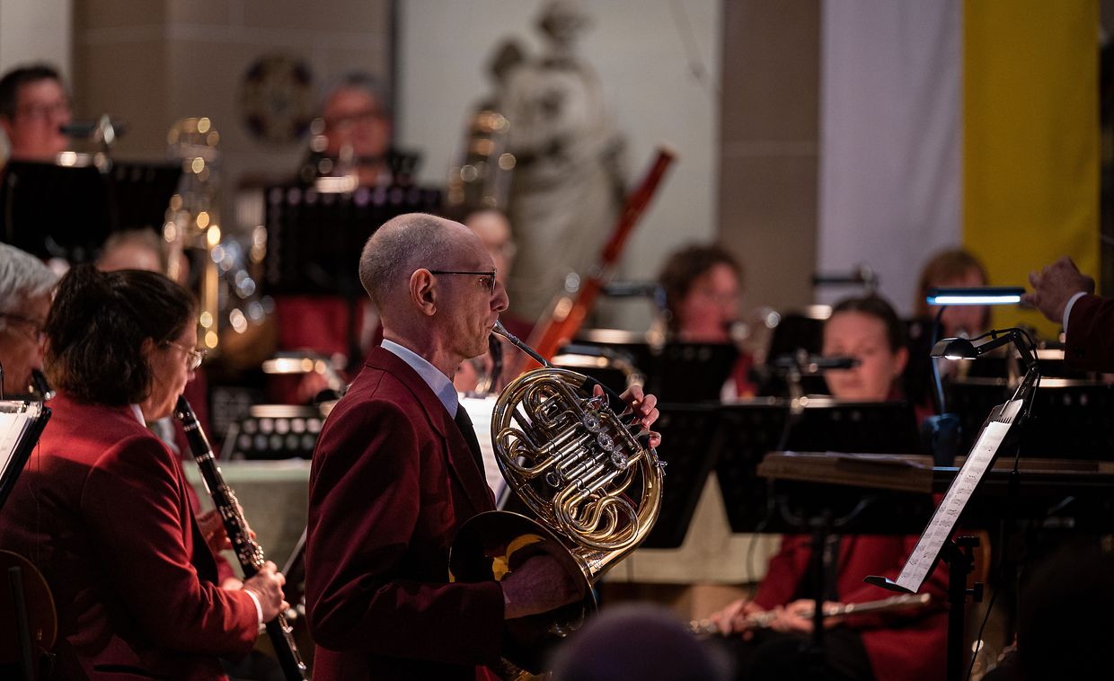 imposante Töne erhoben sich schon zu Beginn des Kirchenkonzerts mit dem Konzertstück „The Green Hill“, das glanzvoll vorgetragen wurde von dem Solisten Georges Oestreicher auf dem Euphonium.