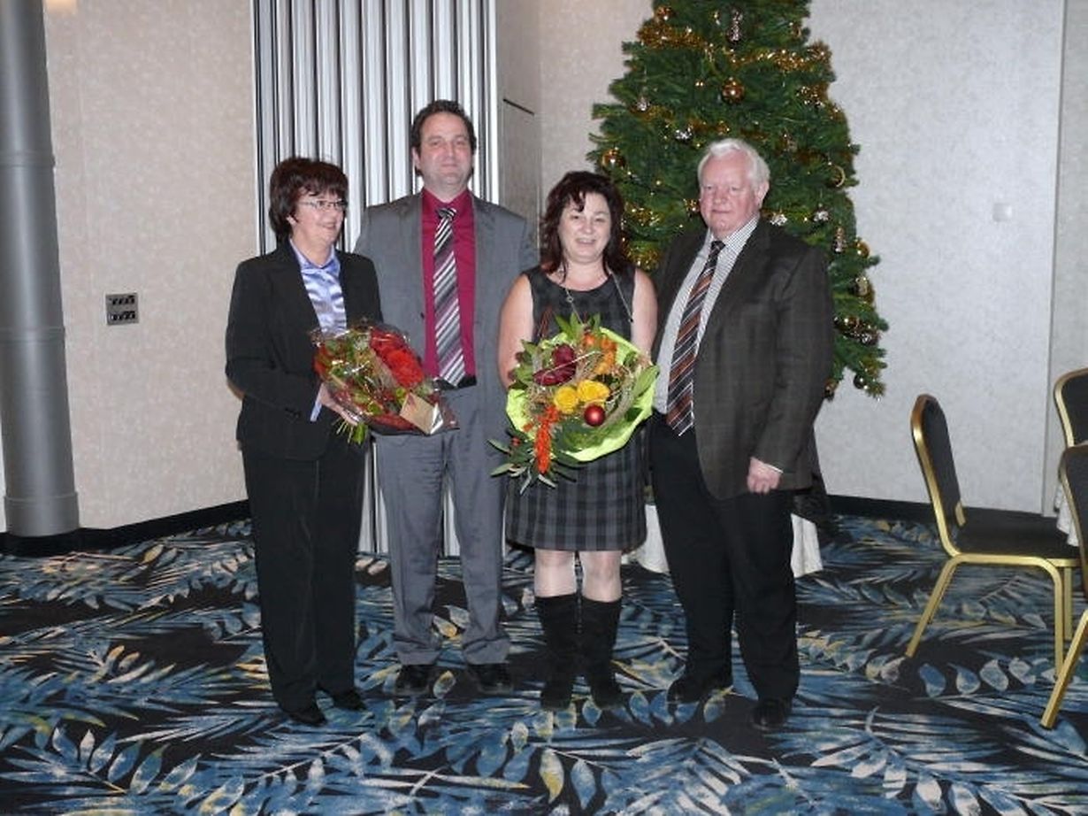 Im Rahmen der Jahresabschlussfeier für die Belegschaft im Hotel International, ehrte die Geschäftsleitung des Unternehmens Rinnen in Clerf ihren Mitarbeiter Edgar Johanns für 20 Jahre treue Dienste. Edgar Johanns erfüllt nicht nur seinen Beruf als Buchhalter mit der notwendigen Sorgfalt, sondern er ist ebenfalls Personaldelegierter und somit ein wichtiges Bindeglied zwischen der Geschäftsleitung und den Mitarbeitern. Im Rahmen der Feierstunde wurde dem Geehrten ein Geschenk überreicht. Derweil erhielt seine Gattin Anita einen schönen Blumenstrauß Die Belegschaft ihrerseits bedankte sich für die Einladung zur Weihnachtsfeier mit einem Blumenstrauß für die Chefin und einer kleinen Aufmerksamkeit für den Chef. (TEXT/FOTO: JOSETTE RINNEN-KOCH)