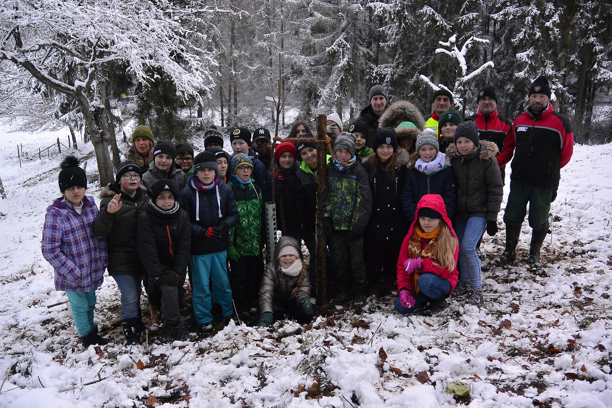Den 1. Dezember 2017 hunn d’Kanner aus dem Cycle 4.1. vun Duelem, zesumme mat hiren Enseignanten, dem Fierschter a sengen Aarbechter, 10 Uebstbeem geplanzt. Bei dëser Geleeënheet huet de Fierschter dovu profitéiert de Kanner wichteg Informatiounen iwwert d’Natur mat op de Wee ze ginn. Nodeems de Kanner hier Beem geplanzt woren, hunn si sech bei engem waarme Schocki an enger Mëtsch an der Technescher Hal opgewiermt.