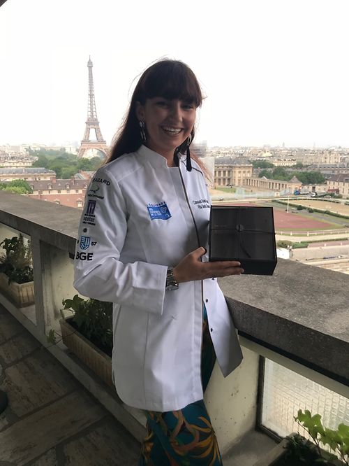 Rita Bento Gonçalves de l’Ecole d’Hôtellerie et de Tourisme du Luxembourg (Hotelschoul) à reçu le 1er prix de la part de Monsieur Olivier Roellinger lors de la grande cérémonie à l’Unesco Paris pour sont travail et sa présentation réalisée lors du concours.