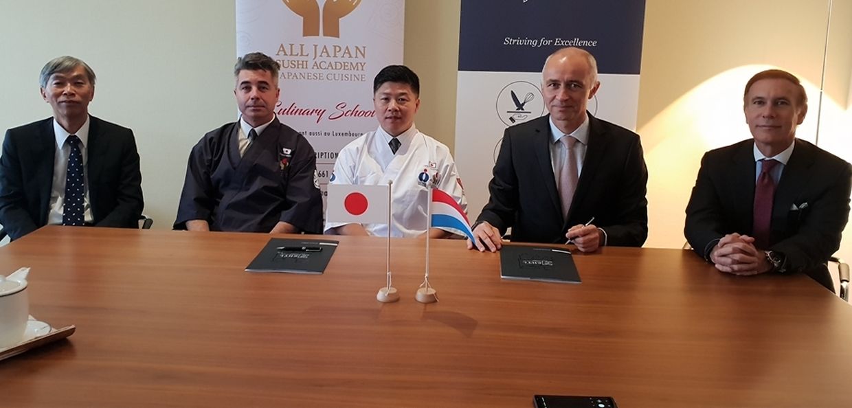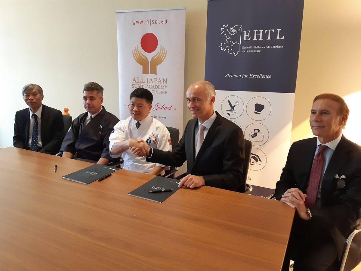 Le 9 octobre 2018, c’est en présence de S.E. Monsieur Shigeji SUZUKI, Ambassadeur du Japon au Luxembourg, que l’École d’Hôtellerie et de Tourisme du Luxembourg a signé un accord de collaboration avec la All Japan Sushi Academy Japanese Cuisine, dont le siège se trouve à Nagoya, Japon.