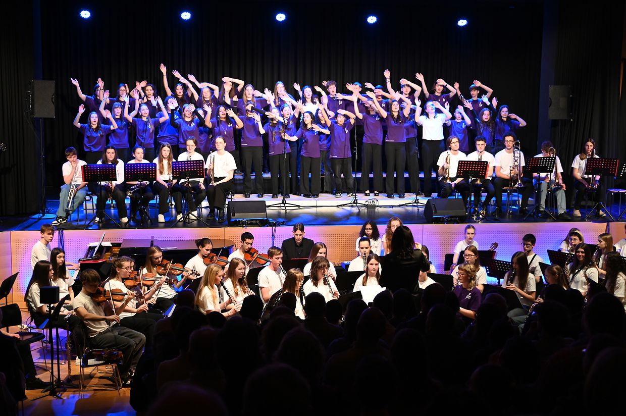 106 begeisterte und engagierte junge Musiker*innen entzückten ihr zahlreich erschienenes Publikum im Festsaal des Lycée classique de Diekirch.
