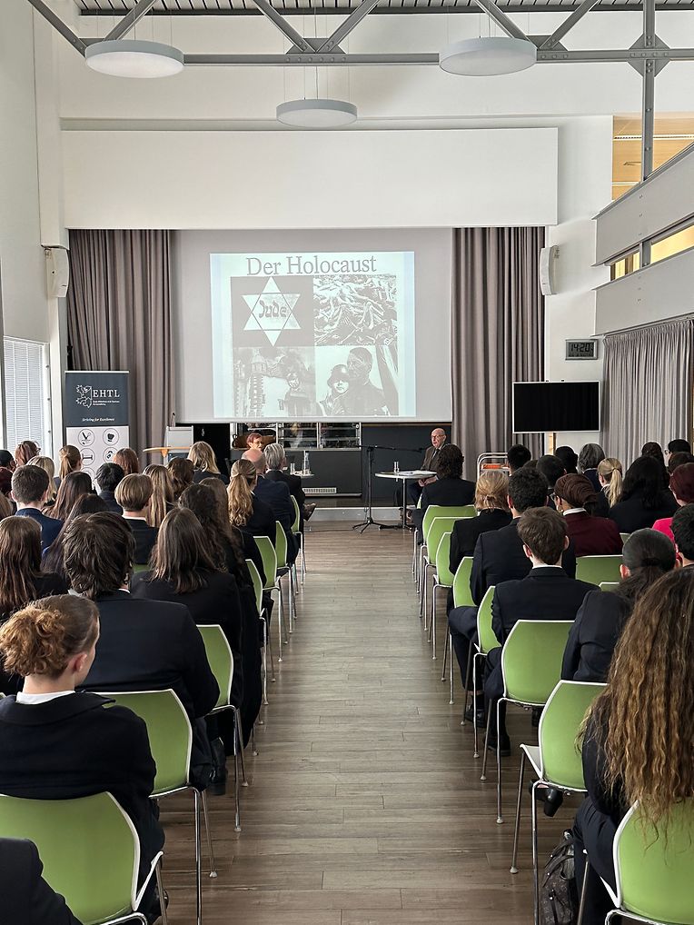 Après son témoignage du 27 janvier 2021, M. Gerd KLESTADT, rescapé du camp de concentration de Bergen-Belsen, a retrouvé la communauté scolaire de l’EHTL à la date du 8 mai 2024 pour raconter son douloureux passé et prôner le «plus jamais ça» à un moment où de douloureux conflits marquent de nouveau l’Histoire de l’humanité.