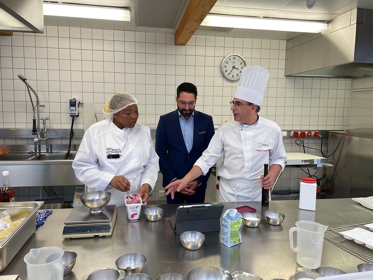 La visite a débuté par la découverte des installations de l'école, incluant les ateliers pratiques de cuisine et de pâtisserie, qui a permis de mettre en avant l'excellence des onze formations proposées par l’EHTL.