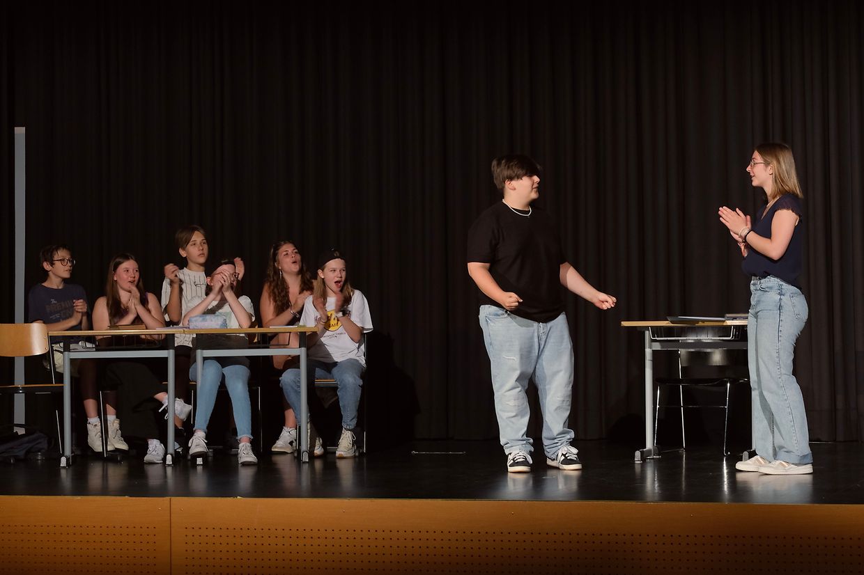 Das am 9. Juni 2023 auf der Bühne des Lycée classique de Diekirch aufgeführte Theaterstück „Le club des jeunes poètes“ ist eine von Lehrerin Martine Schroeder geschriebene Adaptation des Buches, das nach dem gleichnamigen Film „Dead Poets Society“ erschienen ist. Die begeisterten Darsteller*innen der 5e-3e-Klassen spielten in 4 Sprachen (luxemburgisch, deutsch, französisch und englisch). Sie wirkten echt und überzeugend in ihren Rollen – und entsprachen ganz dem Satz, den die junge Leila ihren Eltern entgegenschmetterte, als sie sie vom Schauspielern abhalten wollten: „Jeder hat nur ein Leben, ein Schauspieler hat deren 1000!“
