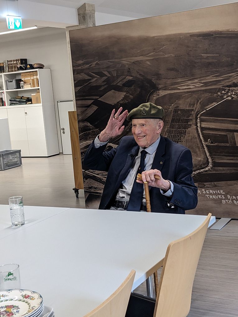 Den 12. Juli war ee spannenden Dag fir d’Personal an d’ Visiteure vum Musée National d’Histoire Militaire (MNHM). Den eemolege Volontaire aus dem Zweete Weltkrich, Xavier Verzin war op Besuch am Musée. Den Här Verzin ass mat sengen 99 Joer, ee vun de leschten Zäitzeien aus dem Zweete Weltkrich. Dofir si mir ganz houfreg, dass hien sech d’Zäit geholl huet fir eis am Musée ze besichen. Dës Renconter huet eng eenzegaarteg Geleeënheet gebueden, fir sech an der Geschicht vu sengem Engagement erëmzefannen.