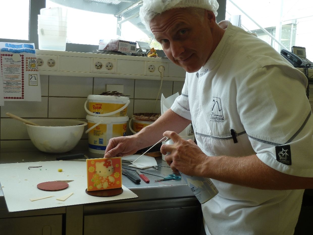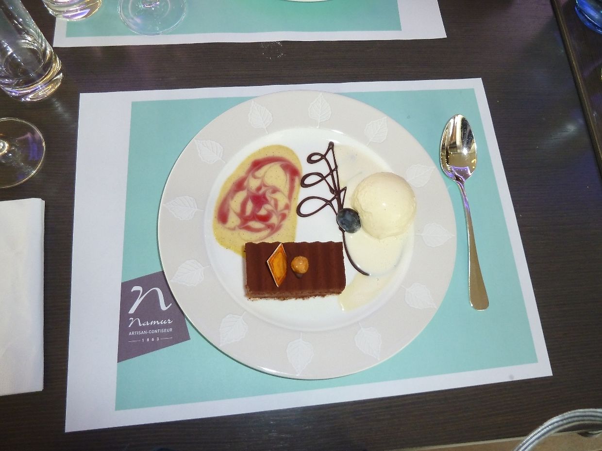 Do si mir vum Catering Manager duerch déi nei Atelierë vun der Confiserie gefouert ginn, do wou déi schneekeg Knippercher an déi wonnerschéin Kuche gemaach ginn. Mir hunn erkläert kritt, datt beim "Namur" alles an eegener Produktioun a mat grousser Suergfalt preparéiert gëtt. Mir konnten nokucken, wéi d'Rouseblieder aus Marzipan gemaach gi sinn. Wierklech impressionant. Duerno si mir am Restaurant verwinnt ginn.