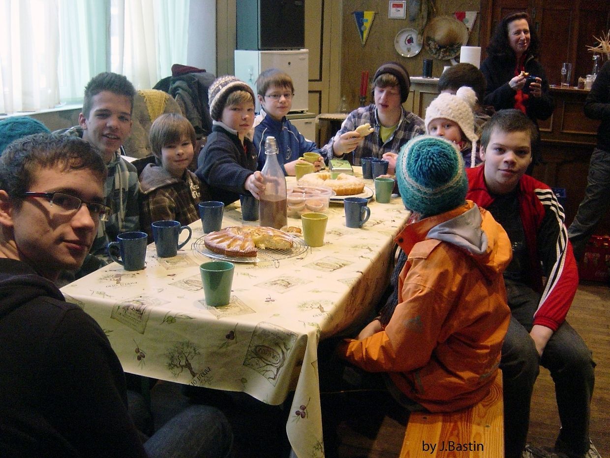 Sonndës gung dun de Spaass weider. Bei der Buerg guff ët Iebëssenbulli mat Mettien, Béier a Softdrinks alles fir 1€. Noo deem gudden Mauffel huet ett kengem méi un eppes gefeelt an géint 21:00h sin di eischt heem gaang , d’Trapp aus, di aaner zereck an di aal Schou’l, an nach aanerer ob Weicherdang bei d’Isabelle fir do nach en Tuer ze danzen.