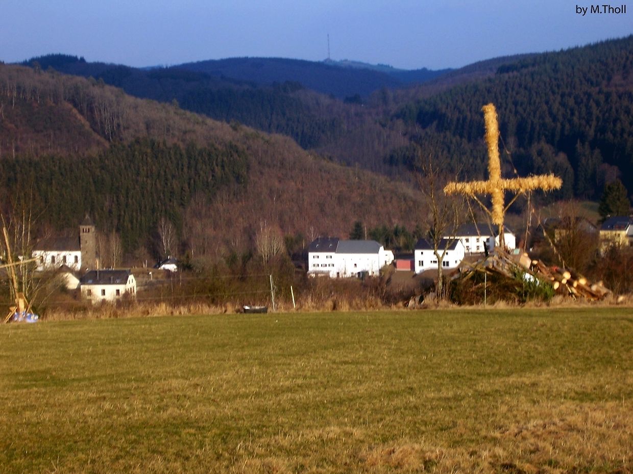 Eist Micheline huet joerzëngtelaang deen aale Brauch vum Buergbrennen iwer Waasser gehaal an d’ganzt Duerf huet him dofir Buergsonndig mat Blummen vun Härzen merci gesoot. Dëst Joër hun Fraiwëlleger aus dem Duerf sech zesummengedunn fir d'Traditioun vum Buergbrennen wéider ze feieren.