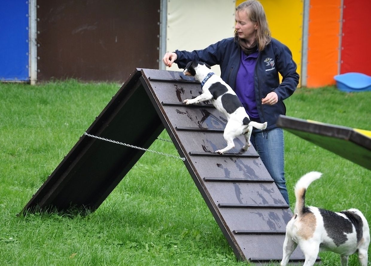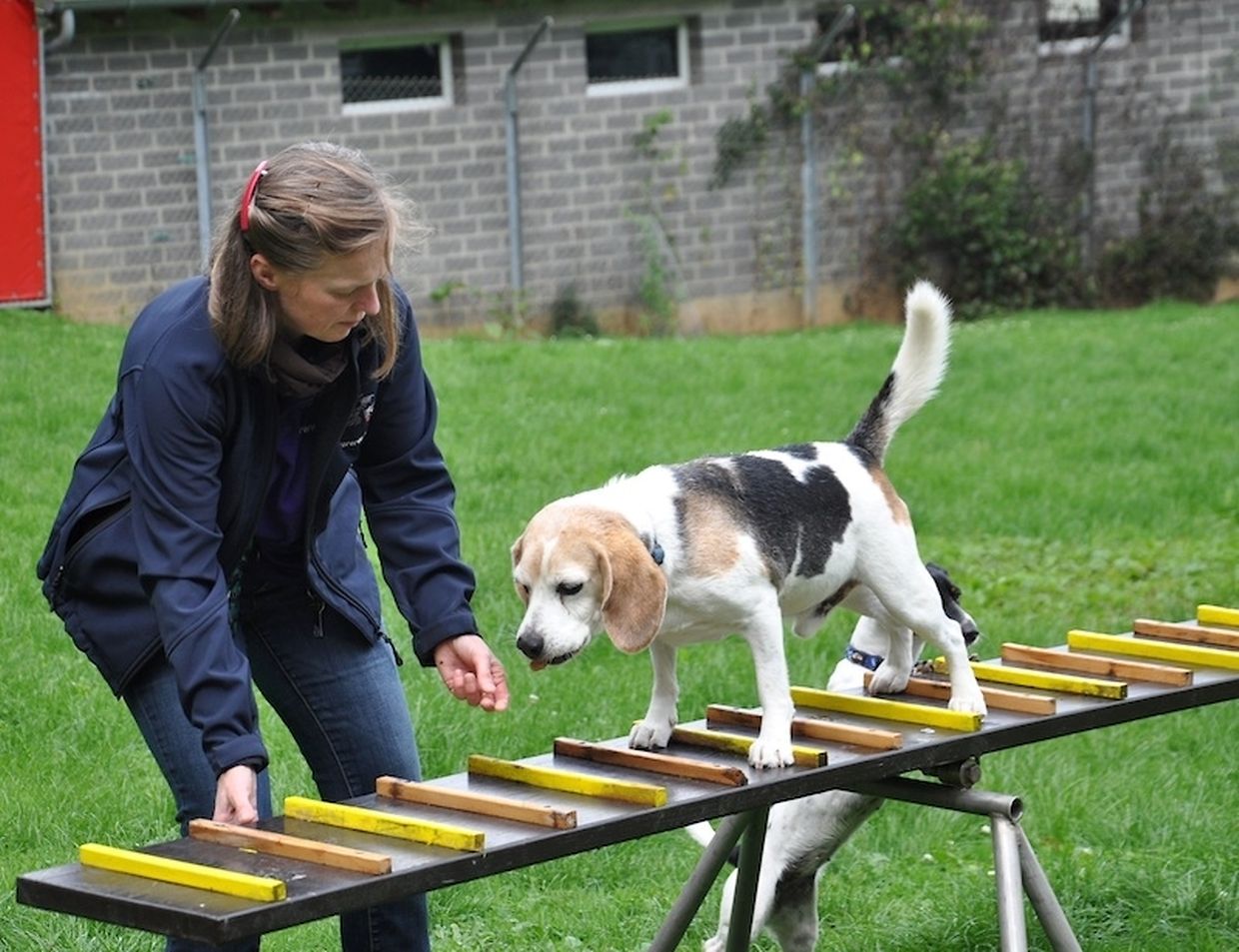Während der flott verlafener Besichtegung vum Asyl konnten d'Leit vu Kompass zum Schluss och verschidde Muppe beim Spill um Agility-Parcours nokucken.
