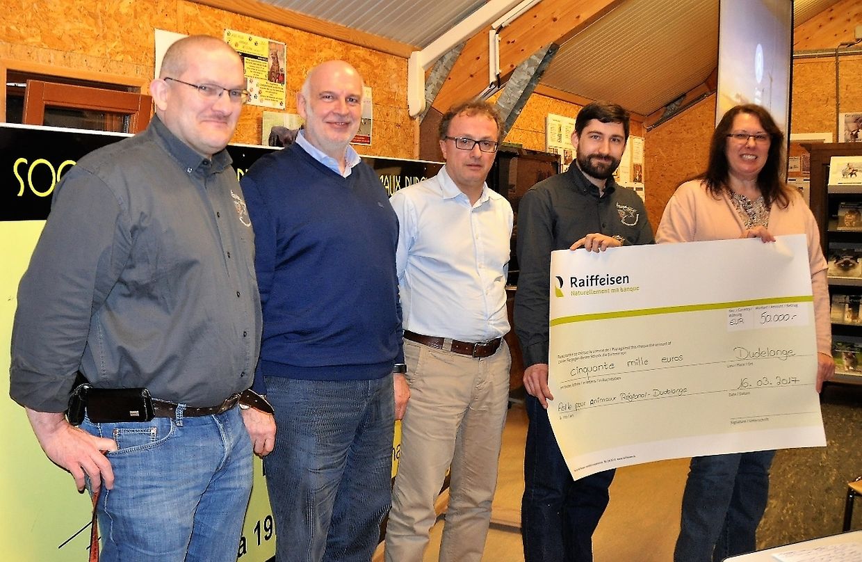 Am Kader vun der Generalversammlung vun der "Société pour la Protection des Animaux Dudelange SPAD asbl" huet d'Vertriederin vun der "Lëtzebuerger Déiereschutzliga" , d'Madame Gaby Wolter dem Diddelenger Déiereschutz e Scheck vu 50.000 € iwwerreecht. Dëse generéisen Don hëlleft en Deel vun de Funktiounskäschte vum Regionalen Déierenasyl - Diddeleng ze decken.