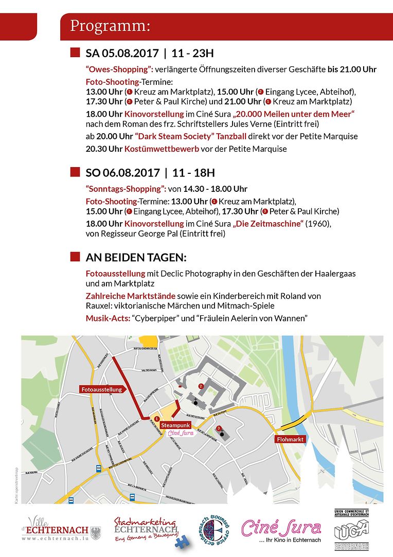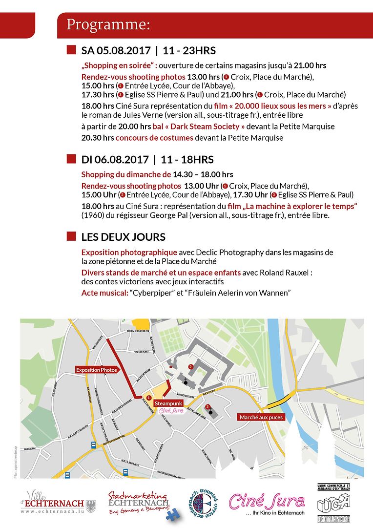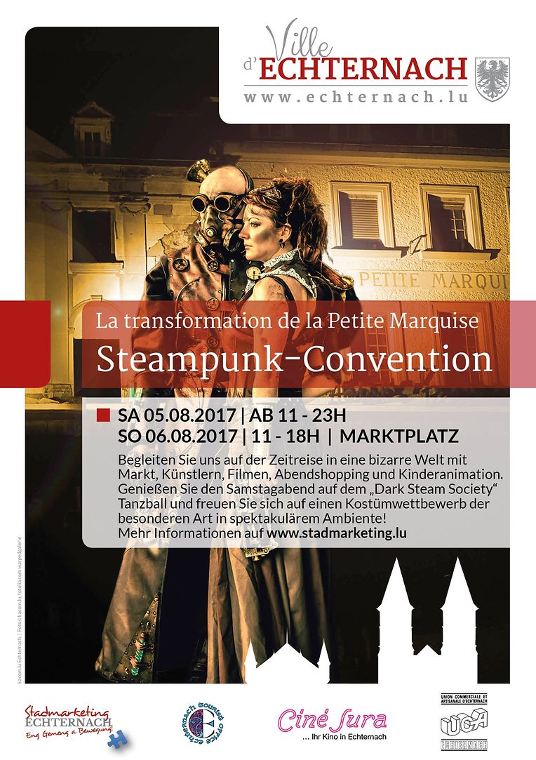 Auf dem historischen Marktplatz in Echternach findet am 5./ 6. August 2017 erstmalig eine „Steampunk-Convention“ mit dem Thema „La transformation de la Petite Marquise“ statt. Geplant sind interessante Stände, Workshops, eine Fotoausstellung und Kinovorführungen. Am Samstagabend wird ein "Dark Steam Society"-Tanzball mit Kostümwettbewerb, direkt auf dem Marktplatz, vor der „Petite Marquise“, stattfinden.
