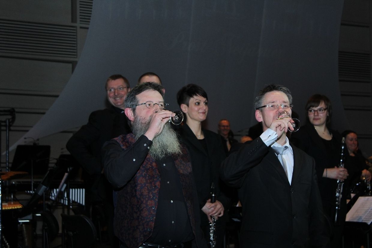Mit „standing ovations“ verabschiedete das Publikum die Musiker zum Schluss der 40. Auflage des Neujahrkonzerts der Harmonie Municipale Echternach am vergangenen Wochenende im Trifolion. Mit der Savannah Symphony von Philip Sparke, dem in London geborene Komponist und Blasmusikfachmann, eröffnete die HME ihr Konzert. Diese Symphonie beschreibt drei Jahrhunderte der Geschichte der Stadt Savannah (Giorgia) in den USA. Die Symphonic Suite aus dem Film „The Lord of the Rings“ , überarbeitet von Pol Welter, Saxophonist der HME, beendete den ersten Teil dieser Veranstaltung. Der zweite Teil des Konzerts stand ganz im Zeichen der Solistin Dominique Steiner, die in „Gabriel's Oboe“ von Ennio Morricone aus dem Film „The Mission“ das Publikum zu begeistern wußte. Weitere Highlights an diesem Abend waren die vom Dirigent Daniel Heuschen arrangierten Werke von Mariano Mores „Tango Milonga“, Ennio Marricones und Scott Joplins „Playing Love“ und „Peacherine Rag“ sowie das „Konzert-Gavotte“ von Franz Lehar. Zum Schluss der Veranstaltung hatten sich die Verantwortlichen einen besonderen Gag einfallen lassen. Unter den Klängen des Kaiser Walzers von Johann Strauss II betraten Kaiser Franz und Kaiserin Sissi unter dem Applaus des Publikums den Saal.