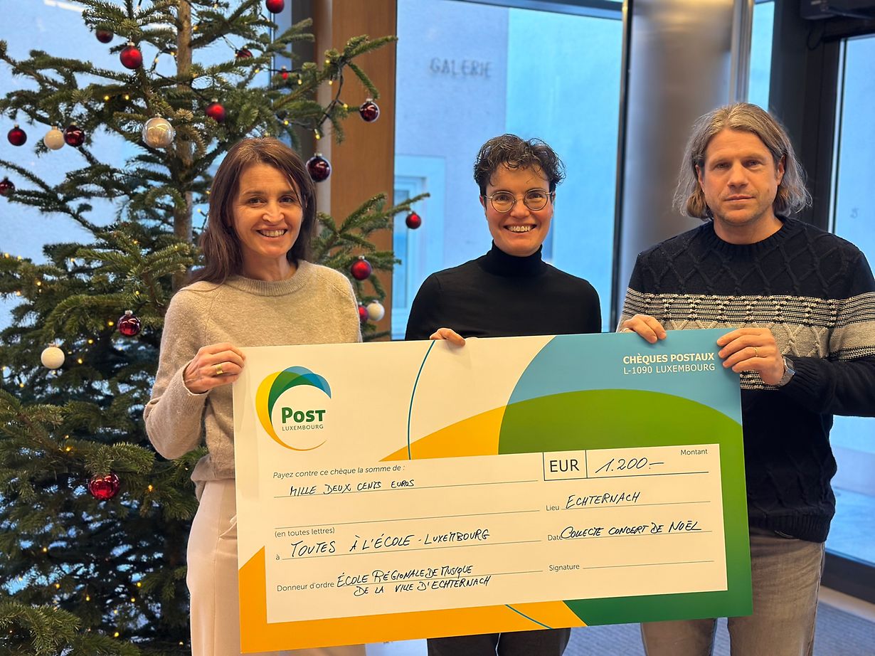 Le mardi 9 janvier la Directrice de "Toutes à l’école Luxembourg", Christèle Dupiellet et la responsable communication et dons, Catherine Ravasio ont rendu visite à l'école de musique à Echternach pour une remise d'un chèque d'une hauteur de 1.200€.
