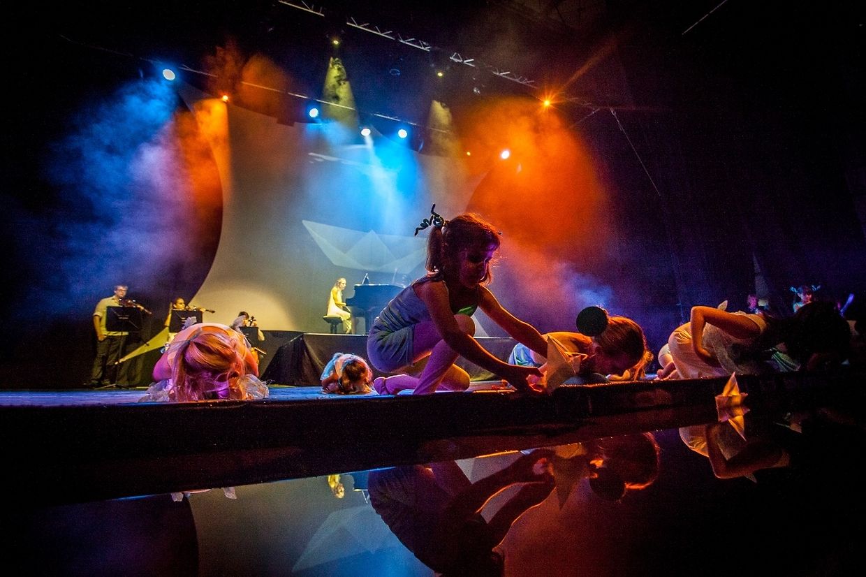 Im zweiten Teil des Abends vermischten sich wunderbare Videoprojektionen der jungen Künstlerin Michelle Kleyr, die auch unter anderem atemberaubende Unterwasseraufnahmen von den Tänzern gemacht hat, mit live-Musik, Tanz und Schauspiel. Der Leitfaden waren Texte von der belgischen Autorin Brigitte Jacques aus ihrem Buch "Dis, est-ce que ça repousse les ailes? " die von 3 Schülern aus dem Echternacher Lyzeum mit sehr viel Einfühlvermögen zwischen den Tanzeinlagen vorgetragen wurden. Die wunderschöne Musik wurde wieder eigens für diese Veranstaltung komponiert von Caroline Mirkes die diese auch selbst am Klavier vorgetragen hat. Die Choreographie von Sieglinde Nies war einfach atemberaubend und perfekt auf die verschiedenen Niveaus der Schüler abgestimmt. Auffallend war auch wie perfekt alles abgestimmt war und geklappt hat in Sachen Licht und Ton durch eine ausgezeichnete Arbeit der Licht-und Tontechniker des Trifolion. Die wunderschön hergerichtete Bühne erschien in schönsten Lichtern und der Klang aller Instrumente war ausgezeichnet. Alles in allem ein perfekt gelungenes Event das auf eine sehr subtile und kreative Art und Weise verschiedene Kunstformen miteinander vermischte und sehr viel künstlerisches Potential erkennen lies, sowohl von jungen Musikern aus auch von Schülern alles Altersklassen. Der endlose Applaus eines total begeisterten und entzückten Publikums bestätigte dies.