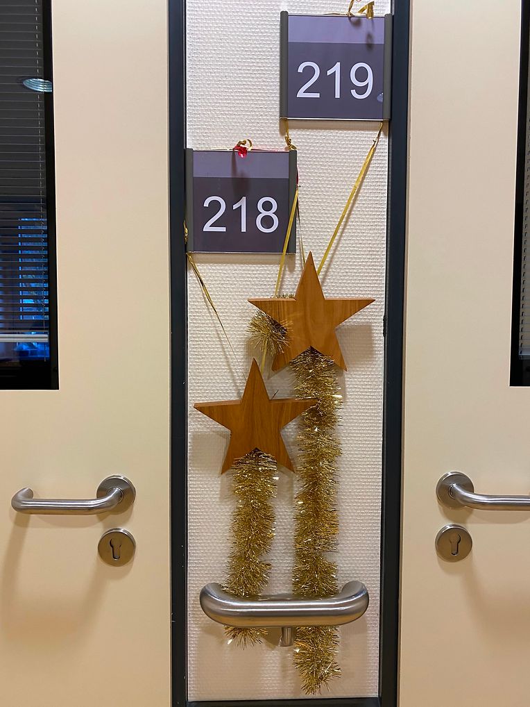 Der Joffer Anne Brassel hir Spillschoulsklass vu Schëffleng mécht all Joer een Deel vum Dekor fir d’Palliativstatioun an der CHL-Klinik vun Eech. D’Kanner hunn vir all Patient ee Beemche gemoolt a mat Luten dekoréiert. D’lescht Joer waren et grouss Stären, déi erem un de Nummereschëlder vun den Dieren hänken. Dee ganzen Dekor louch an den Hänn vun de 6 Leit staarker Omega 90 – Benevolenekipp vun Eech