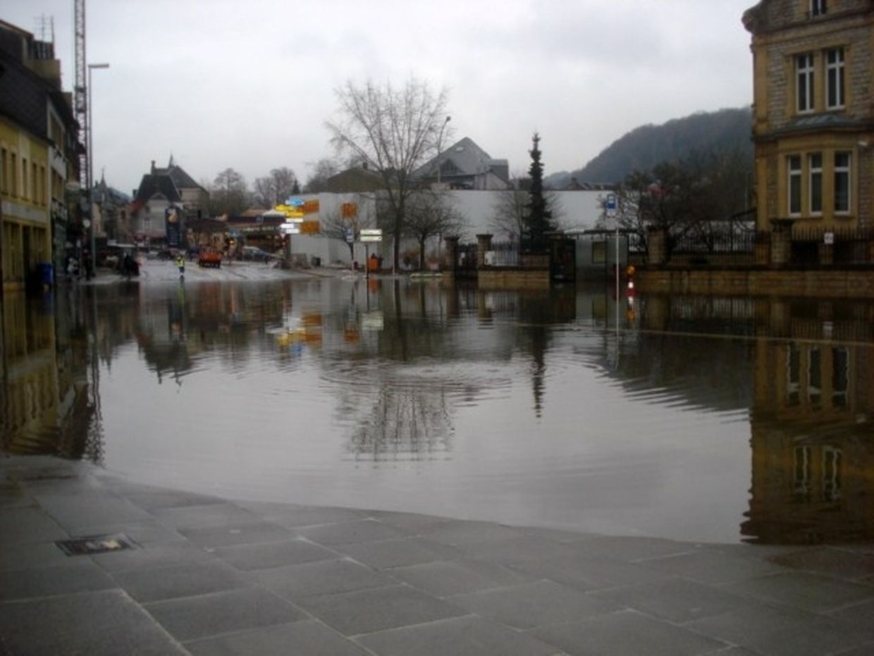 Jo d'Eecherplaz stong a steet am Moment nach ënner Waasser: fir déi eng kuckeswert an och intressant fir ze knipsen, fir déi aner Ierger an Onbequemlechkeeten, well iwwerschwemmte Kelleren a keng Méiglechkeet e Bus ze huelen ass jo ower net sou lëschteg.