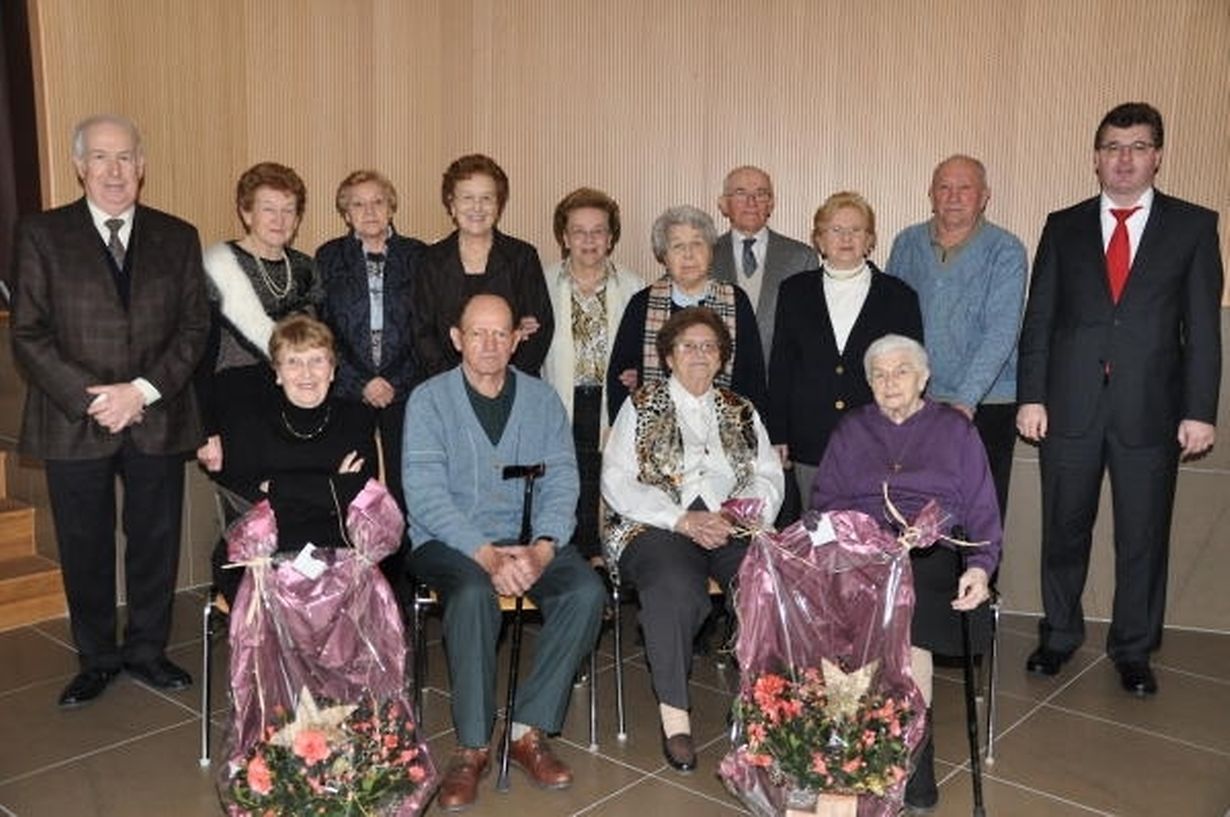 Traditionsgemäß kommen anlässlich der Weihnachtsfeier der Amiperas-Sektion Eischen Jubilare zu Ehren, die im Laufe des Jahres einen runden Geburtstag feierten. Präsident Willy Zimmer wünschte allen Beteiligten ein frohes und besinnliches Weihnachtsfest und ein glückliches und vor allem gesundes Jahr 2011. Dem schloss sich Bürgermeister Serge Hoffmann im Namen der Gemeinde Hobscheid an. Jeweils mit einem herrlichen Blumenarragement wurden die 85-jährigen Jubilare Dina Schumacher und Lucie Wolff, die 80-jährigen Nicolas Lambert, Adrien Louis, Lily Moes-Wolff, Gritty Steinmetzer, Francine Weis- Wegener und Emile Freymann sowie die 75-jährigen Geburtstagskinder Léa Simon-Reis, Marguerite Louis-Bosseler und Florentine Godefroid geehrt. (Text/Foto: CORYSE MULLER)