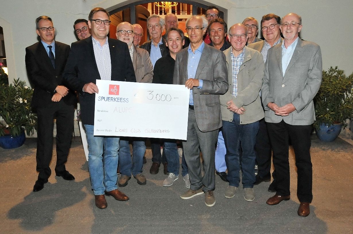 Le Lions Club Gehaansbierg a remis pour la troisième année consécutive un chèque de 3.000 euros à l’association luxembourgeoise pour la prévention des sévices à l’enfant (ALUPSE) au restaurant La Rameaudière à Ellange/Gare. Le chèque a été remis au docteur Roland Seligmann, président et fondateur de l’association pour le service Bébé.