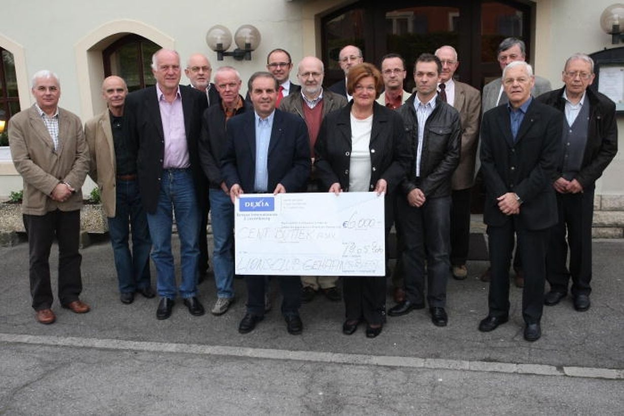 Im Restaurant „La Ramaudière“ in Ellingen überreichte der Lions Club „Gehansbierg“ einen Scheck über 6 000 Euro an die Verantwortlichen des „Cent Buttek“ aus Bettemburg. Das Geschäft wendet sich an sozial schwach gestellte Menschen. Sie erhalten dort Waren zum Nulltarif. Die Lebensmittel stammen in der Regel aus Supermärkten, wo sie ein bis drei Tage vor dem Verfallsdatum aus den Regalen genommen werden. Obst und Gemüse, Milch, Backwaren usw. sind aber durchaus noch verzehrbar. Um in den Genuss der Lebensmittel zu kommen, müssen die Kunden sich mit einer Karte, die sie im Sozialamt erhalten, ausweisen können. Da die Waren nicht völlig kostenlos sein sollen, wird um eine kleine Spende gebeten. Inzwischen hat sich auch die Nachbargemeinde Düdelingen der Initiative angeschlossen.(TEXT/FOTO: RAYMOND SCHMIT)