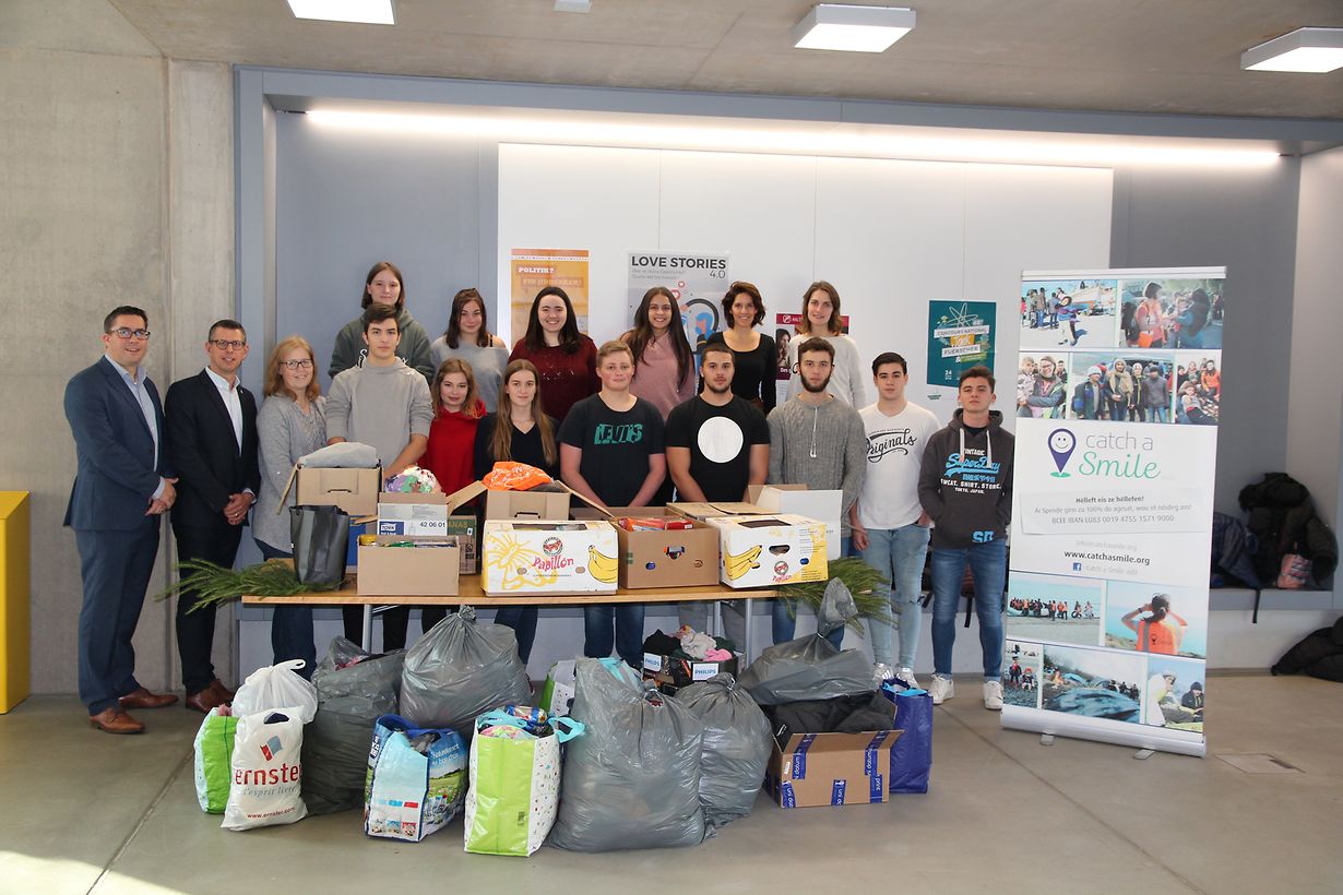 D’Optioun Bénévolat vun 3e vum Lycée Hubert Clément vun Esch huet och dëst Joer erëm eng Sammelaktioun fir CATCH A SMILE an d’Liewe geruff. Vill Schüler an Enseignanten hu Wanterkleeder, Hygiensartikelen a Liewensmëttel gespent, di an d’Flüchtlingscampen am Ausland ginn, wou de kale Wanter de Leit d’Liewen nach mi schwéier mécht.