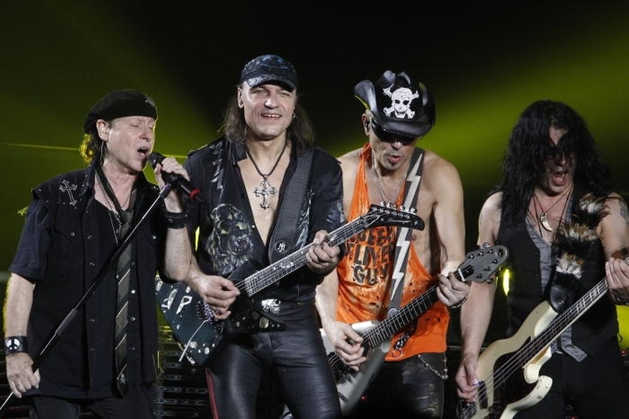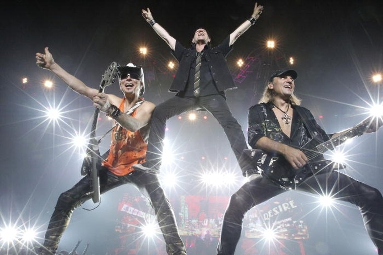 Auch Sänger Klaus Meine ist Jahrgang 1948, auch ihn kann niemand sich anders vorstellen als im schwarzen, engen Bühnenleder. Nun ja, bei den ersten zwei, drei Stücken („Sting in the Tail“, „Make It Real“, „Bad Boys“) mag die bange Frage aufkommen, ob er's noch so drauf hat wie früher. Doch dann findet der Tonmeister den richtigen Aussteuerungspegel, und Meines Stimme klingt so voll und hoch und klar wie eh und je, und man staunt, wie das schmächtige Kerlchen mit seinen 168 Zentimetern Körpergröße das nur hinbekommt. Von ausgefeilter Artistik ist zudem der gezielte Wurf des Tamburins nach geleistetem Einsatz, über acht, zehn Meter flugs in die Hände eines auffangbereiten Bühnenroadies.