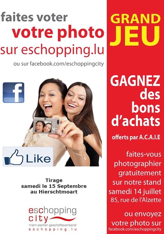 L'association des artisans, commerçants et industriels de la ville d'Esch-sur-Alzette ACAIE - eschopping city a lancé en coopération avec l'agence pointCOMM un grand jeu sur Internet, aussi bien sur leur propre site eschopping.lu et aussi sur Facebook.