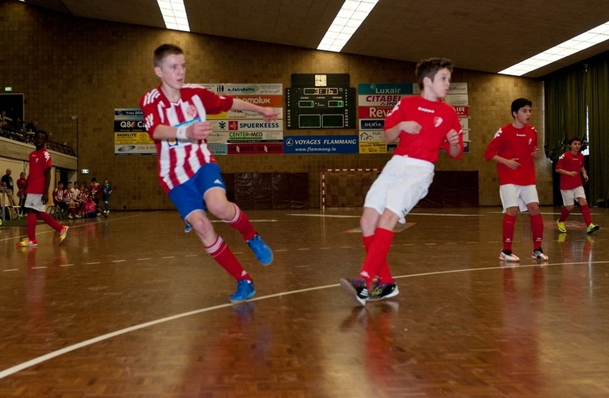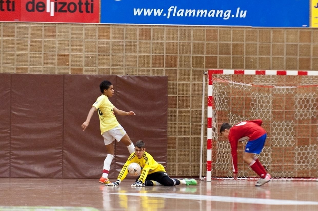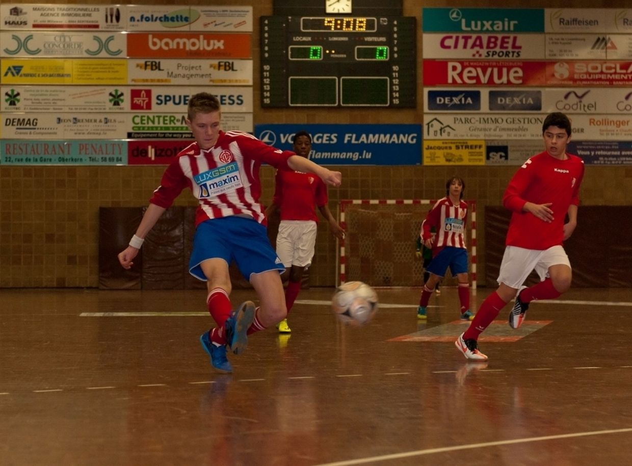 Samedi 4 février les scolaires du CS FOLA Esch ont été éliminés au 3ième tour du Futsal-Cup 2012 au Hall Polyvalant d`Obercorn.C`est à 9.15 Hrs que débutait leur 1er match contre le grand favori de ce groupe B le F91 Dudelange. Au terme des 12 minutes le score final était de 2-0 pour le F91.Par la suite le Progrès Niedercorn a été battu 2-0 avant de se faire surprendre par le FC Medernach, qui gagnait par 2-1.Avec un match gagné et 2 de perdus, il fallait déjà un miracle pour accéder encore à la deuxième place derrière l`intouchable F91, car l`adversaire du 4e matche était l`autre favori du groupe, le Swift Hesperange. Eh bien le miracle allait se produire avec une victoire de 2 à 0.Avant les trois derniers matches, 4 équipes pouvaient encore prendre cette 2e place qualificative pour la grande finale: Medernach, Fola, Jeunesse Esch et le Swift Hesperange.Et ces 3 matches allaient etre plein de surprises. D`abord Medernach allait perdre 4-0 contre Niedercorn, qui n`avait pas encore gagné un seul match. Puis malheureusement c`était au tour du Fola qui encaissait avec le sifflet final le 1-0 contre la Jeunesse, alors qu`elle dominait la rencontre. Le dernier match devait amener la décision ou le Swift Hespérange était obligé de battre le F91 après la victoire de la Jeunesse sur le Fola. Au terme des 12 minutes, le score était sans appel: 6-1 pour Dudelange.C,est donc logiquement le F91 qui se retrouve en finale le 11 février avec une surprenant Jeunesse d`Esch.