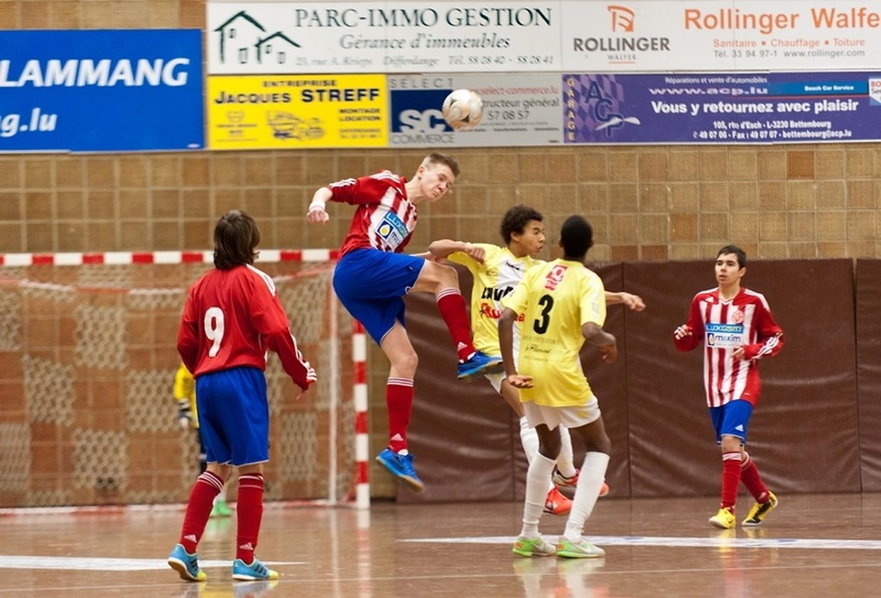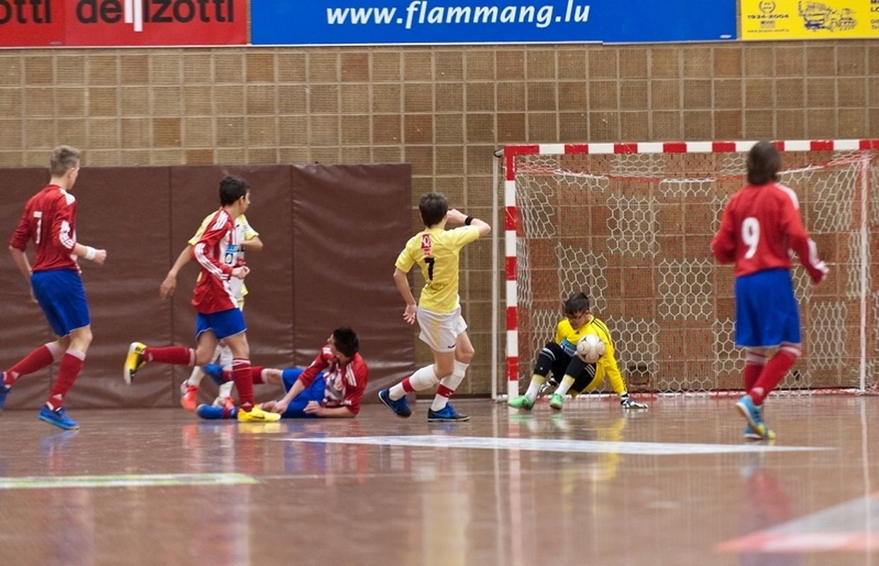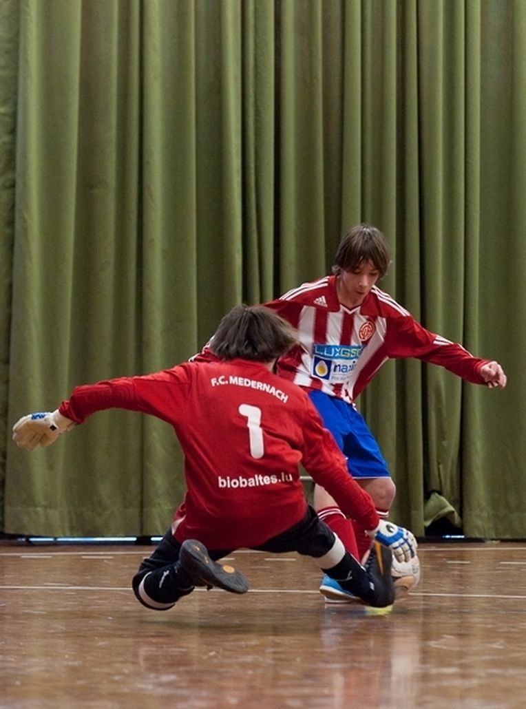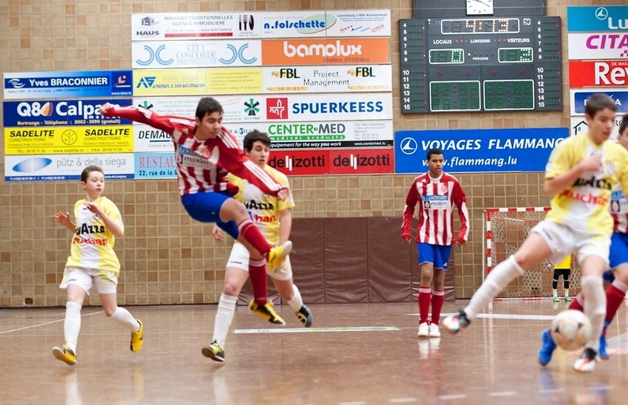 Samedi 4 février les scolaires du CS FOLA Esch ont été éliminés au 3ième tour du Futsal-Cup 2012 au Hall Polyvalant d`Obercorn.C`est à 9.15 Hrs que débutait leur 1er match contre le grand favori de ce groupe B le F91 Dudelange. Au terme des 12 minutes le score final était de 2-0 pour le F91.Par la suite le Progrès Niedercorn a été battu 2-0 avant de se faire surprendre par le FC Medernach, qui gagnait par 2-1.Avec un match gagné et 2 de perdus, il fallait déjà un miracle pour accéder encore à la deuxième place derrière l`intouchable F91, car l`adversaire du 4e matche était l`autre favori du groupe, le Swift Hesperange. Eh bien le miracle allait se produire avec une victoire de 2 à 0.Avant les trois derniers matches, 4 équipes pouvaient encore prendre cette 2e place qualificative pour la grande finale: Medernach, Fola, Jeunesse Esch et le Swift Hesperange.Et ces 3 matches allaient etre plein de surprises. D`abord Medernach allait perdre 4-0 contre Niedercorn, qui n`avait pas encore gagné un seul match. Puis malheureusement c`était au tour du Fola qui encaissait avec le sifflet final le 1-0 contre la Jeunesse, alors qu`elle dominait la rencontre. Le dernier match devait amener la décision ou le Swift Hespérange était obligé de battre le F91 après la victoire de la Jeunesse sur le Fola. Au terme des 12 minutes, le score était sans appel: 6-1 pour Dudelange.C,est donc logiquement le F91 qui se retrouve en finale le 11 février avec une surprenant Jeunesse d`Esch.