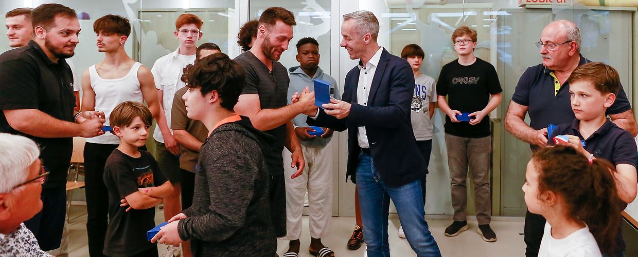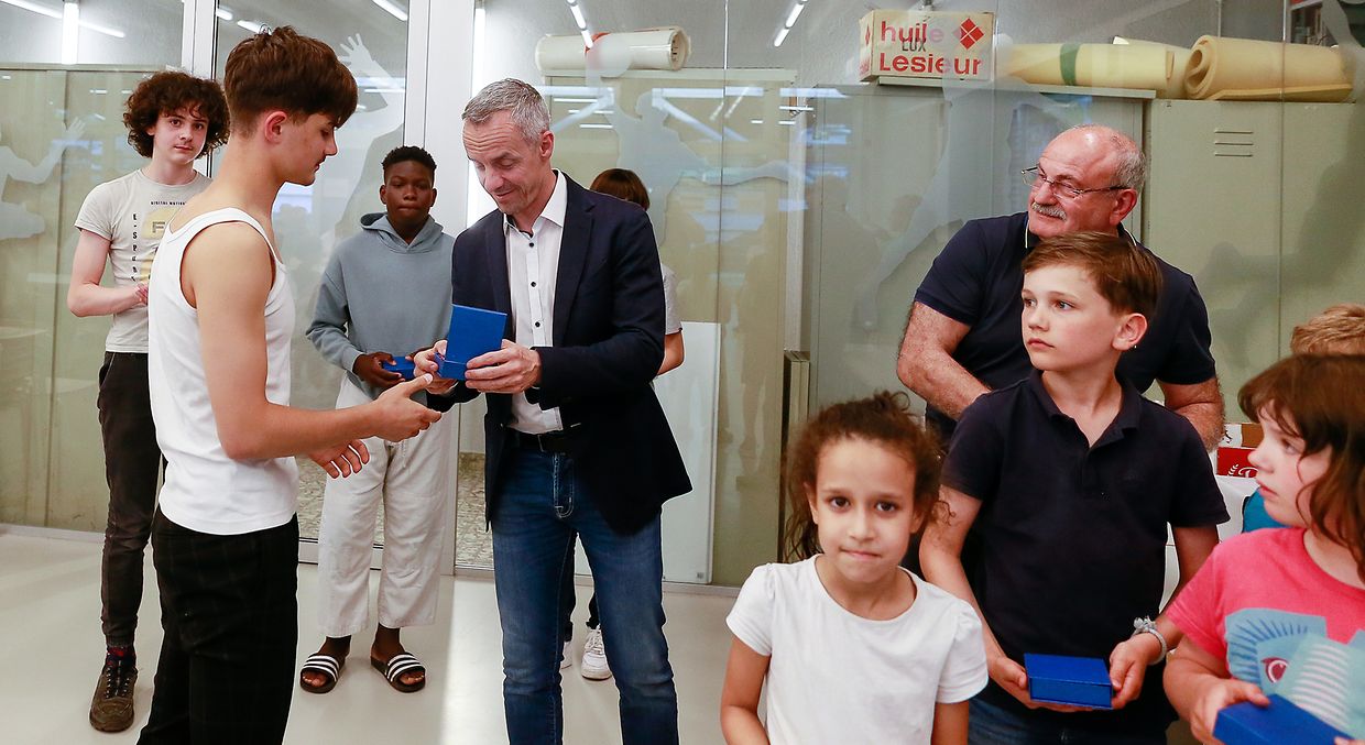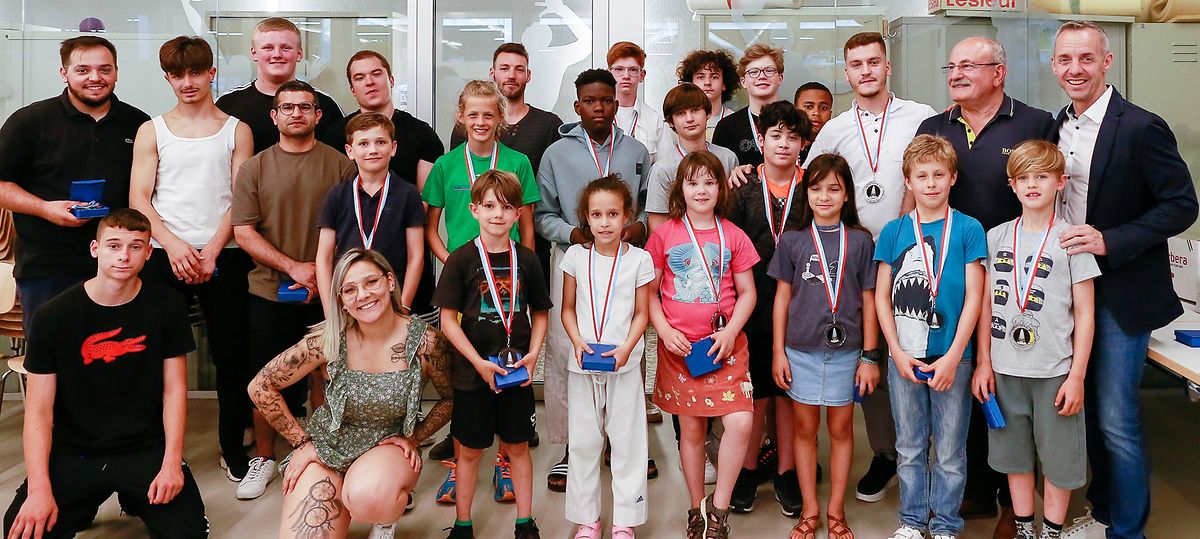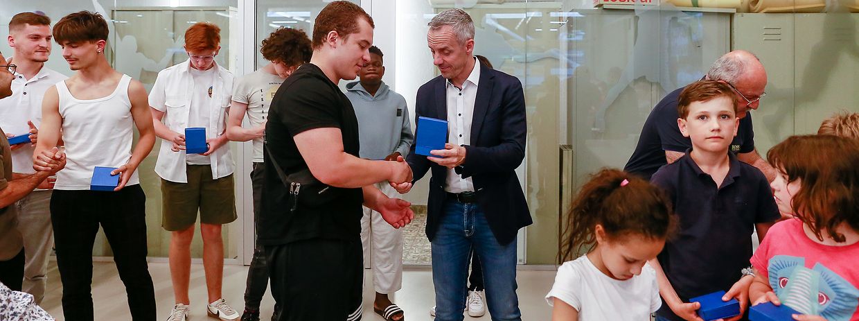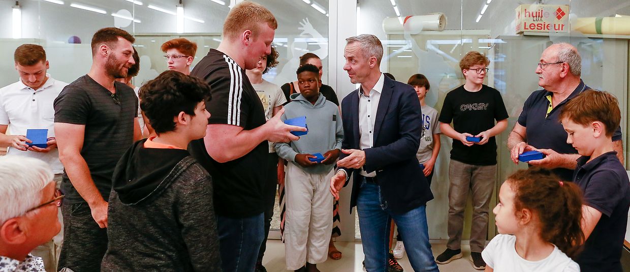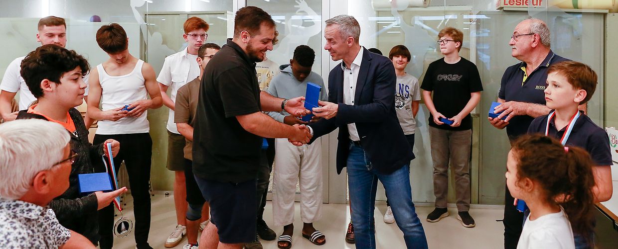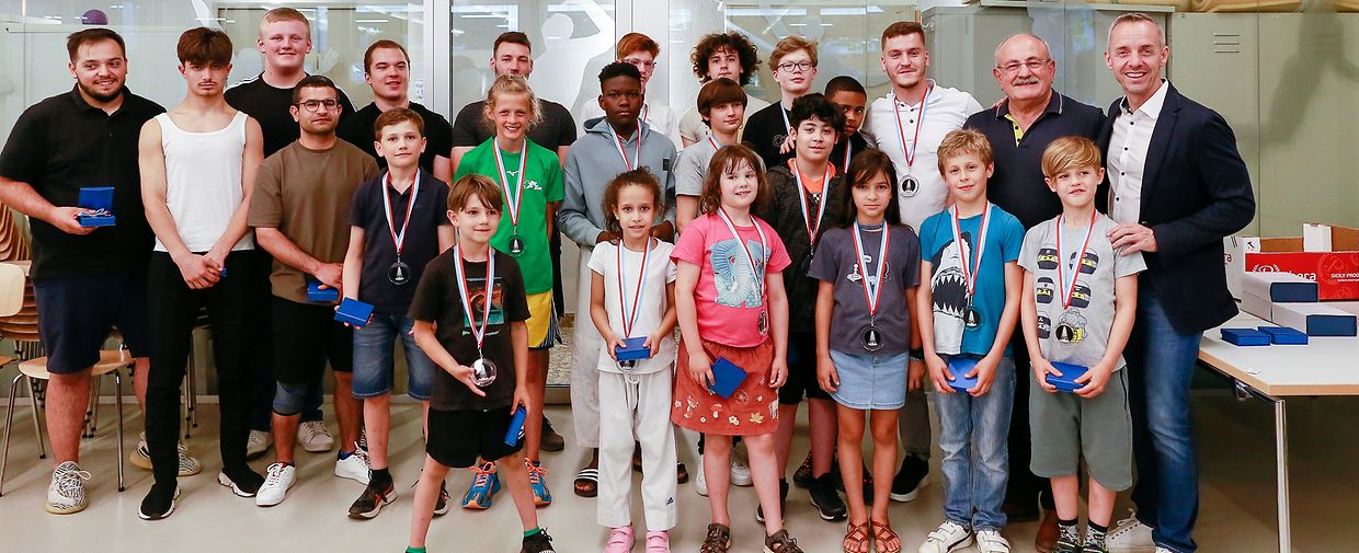 Bürgermeister George Mischo überreichte 27 Medaillen an verdienstvolle Judokas als Anerkennung für herausragende sportliche Leistungen. Tom di Stefano ließ es sich nicht nehmen, auch den Trainern für ihre hervorragende Arbeit eine besondere Wertschätzung zukommen zu lassen und ehrte sie mit einer guten Flasche Wein.