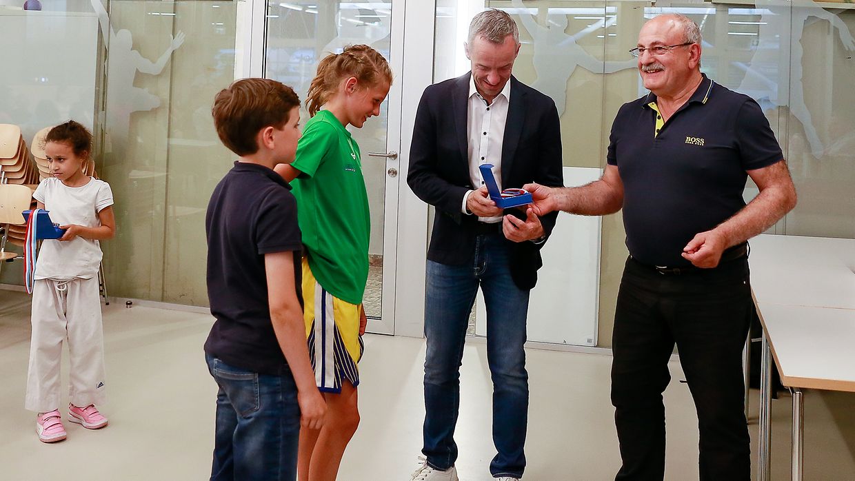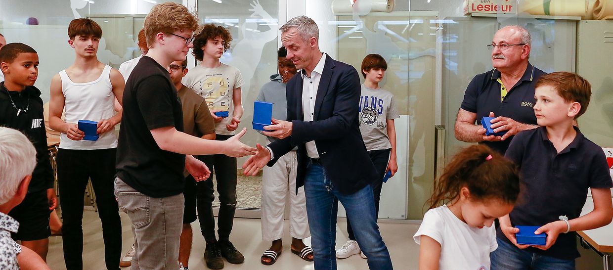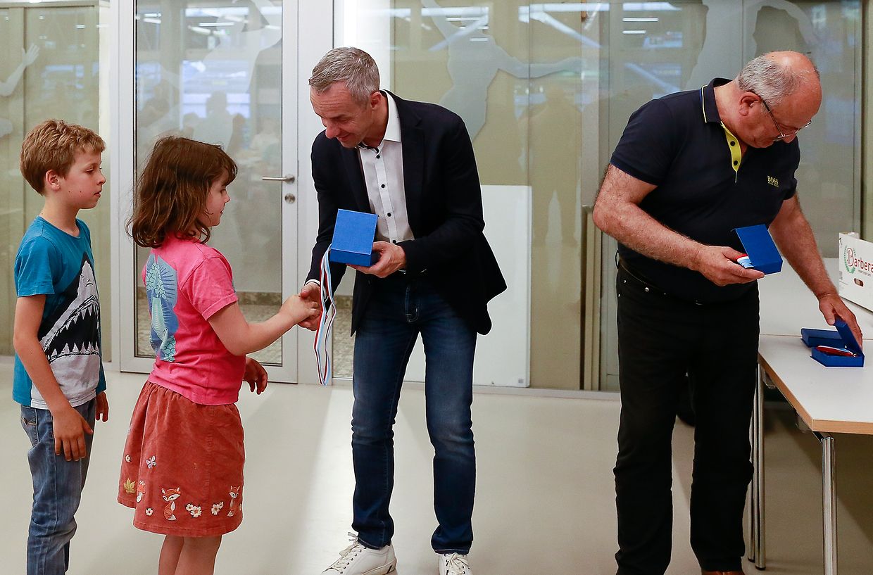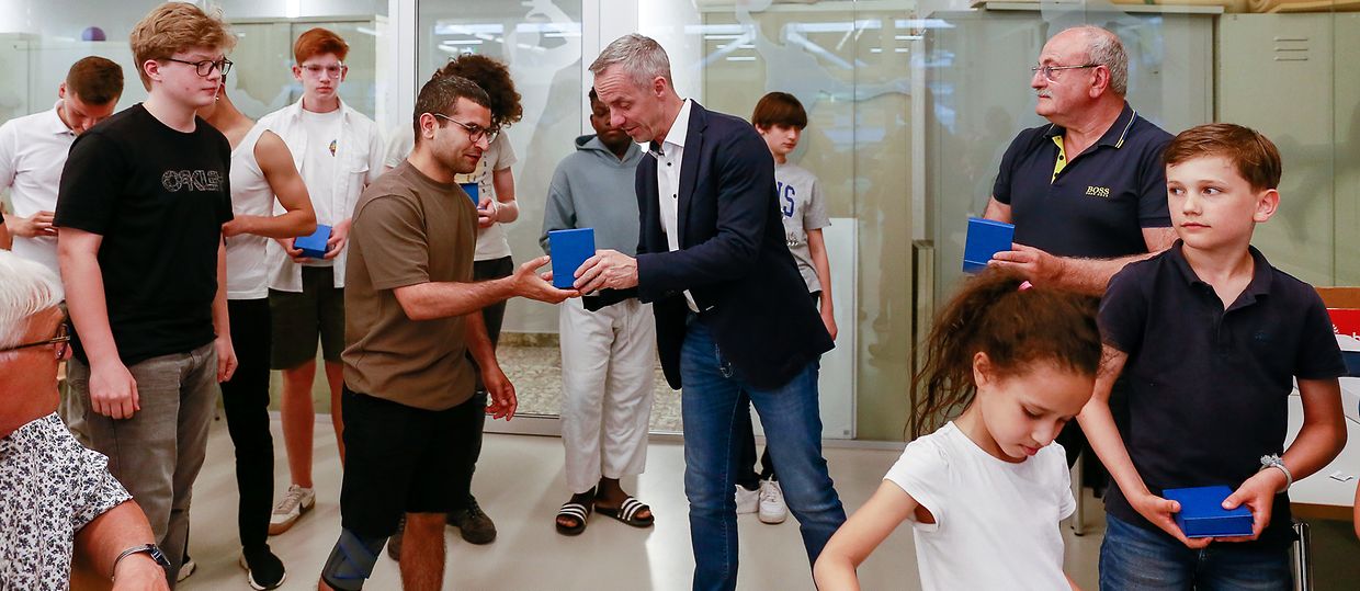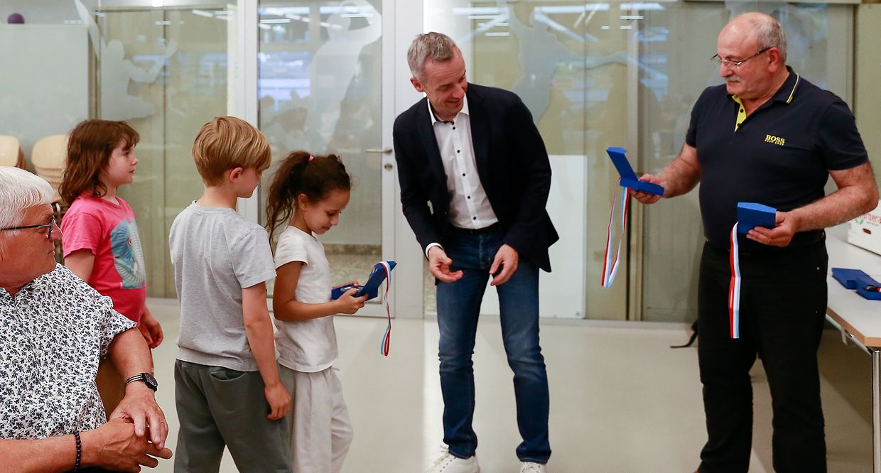 Bürgermeister George Mischo überreichte 27 Medaillen an verdienstvolle Judokas als Anerkennung für herausragende sportliche Leistungen. Tom di Stefano ließ es sich nicht nehmen, auch den Trainern für ihre hervorragende Arbeit eine besondere Wertschätzung zukommen zu lassen und ehrte sie mit einer guten Flasche Wein.