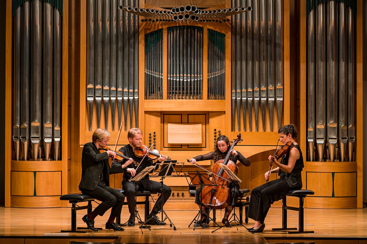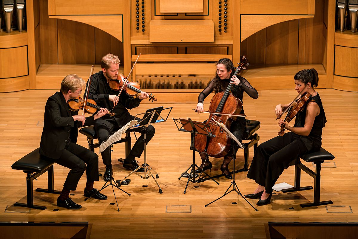 Ein teils prominent besetztes Publikum ließ sich am vergangenen Samstag, dem 23. Oktober im Escher Konservatorium vom Marmen Quartet begeistern. Johannes Marmen (Violine), Bryony Gibson-Cornish (Viola), Sinéad O’Halloran (Violoncello) und der kurzfristig für den aus gesundheitlichen Gründen ausgefallenen Ricky Gore eingesprungene Laia Valentin Braun (beide Violine), wussten die Zuhörer zu begeistern.